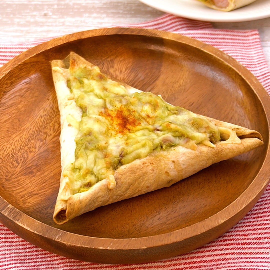 余りがちなトルティーヤの皮を使った一風変わったピザはいかがですか?耳の部分にはソーセージを巻いているので、最後までおいしい!中にはワカモレをたっぷり詰めて、メキシカンらしい満足感のある一枚に仕上げました。見た目も華やかで、ホームパーティーにもおすすめです!
