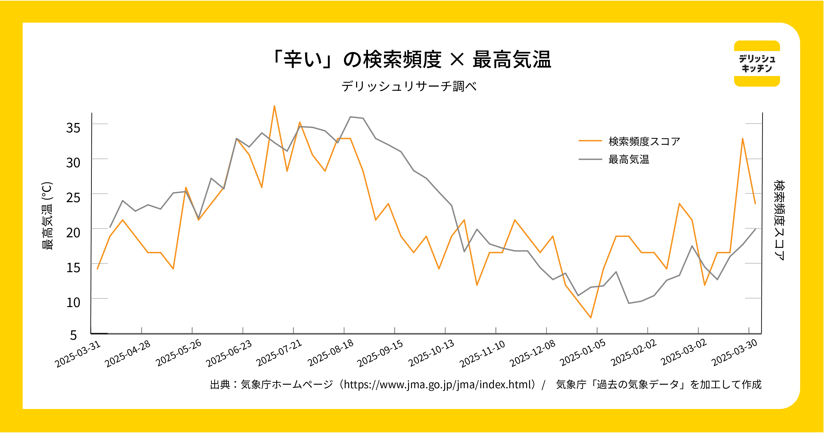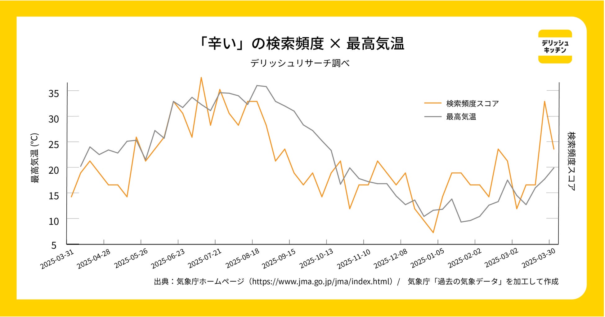 加えて、『デリッシュキッチン』の検索データからも、気温が上昇すると辛いレシピの検索頻度が上がる傾向があることが確認されています。今後気温が本格的に上がり始めるにあたり、スパイシーなメキシコ料理はさらに人気を獲得していくことが予想されます。