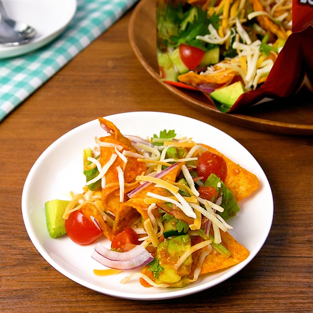 トルティーヤチップスとたくさんの野菜を一緒に食べる!
