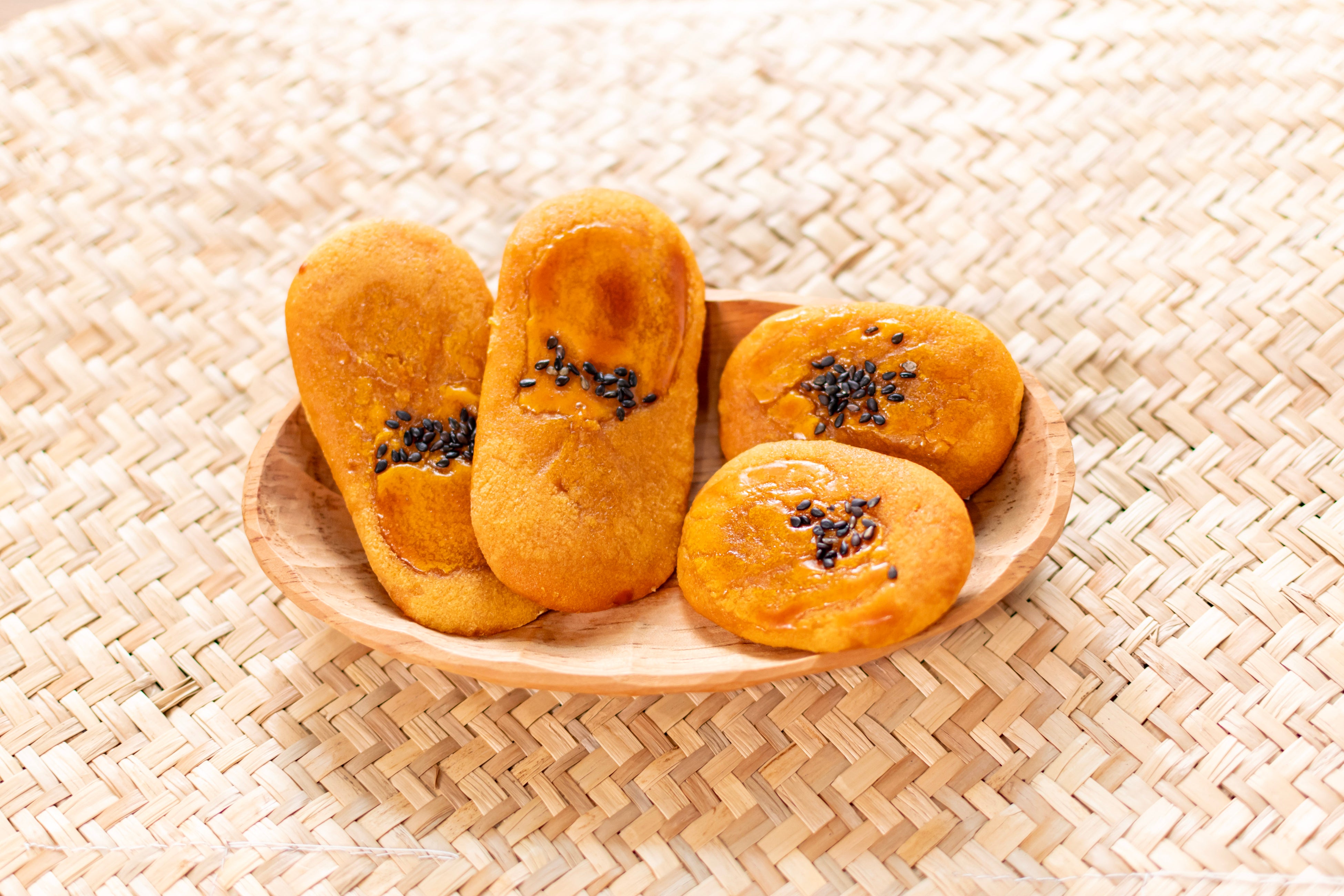 四万十川流域界隈で育てたサツマイモ「人参芋」を使い、添加物を使わないなどこだわり製法で開発したスイートポテト風焼き菓子。縁起のよい小判型で、アクセントには香ばしい黒ゴマをあしらった、懐かしい味わいのお芋の焼き菓子です。