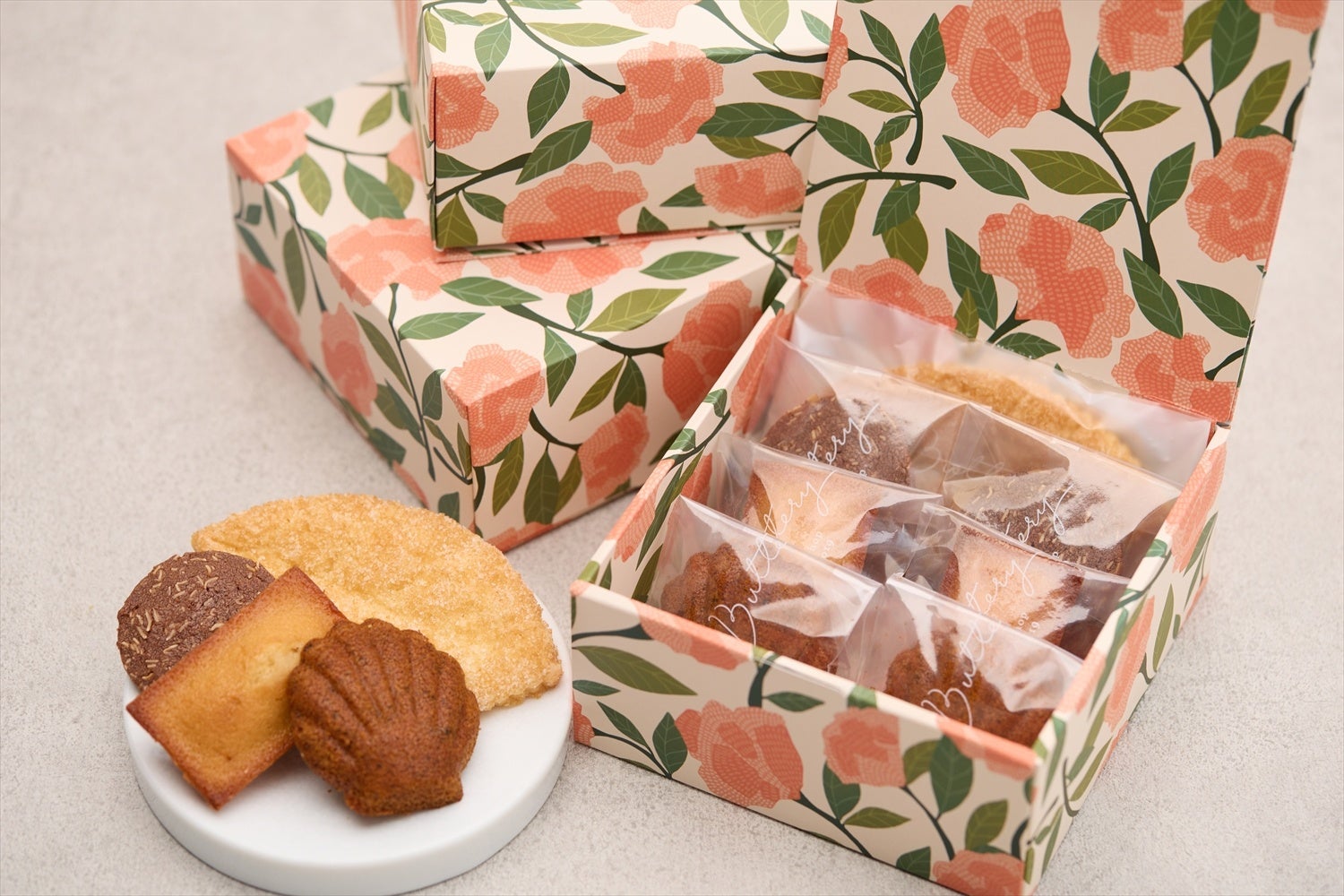また、4月25日(土)~5月10日(日)の期間限定で『母の日ギフトアソート』もご用意しています。カーネーションのイラストが目を惹くギフトボックスに、Buttery自慢の焼き菓子を詰め合わせました。アールグレイの香り豊かな「紅茶のマドレーヌ」の他、「北海道バターのフィナンシェ」「アマンドショコラクッキー」「リーフパイ」を一箱で贅沢に楽しめます。