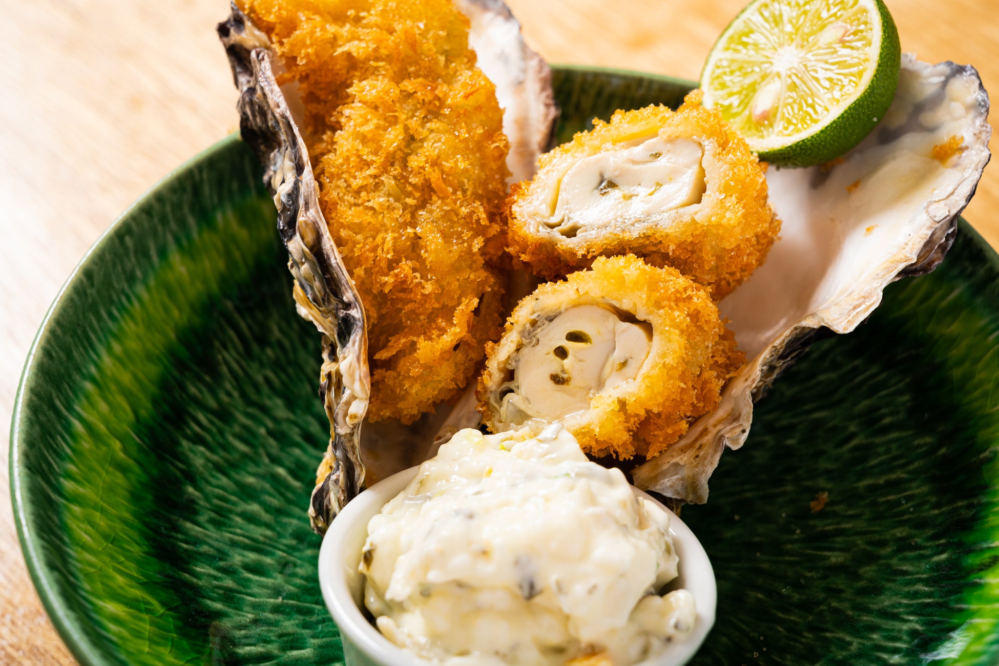 大ぶりの牡蠣を豪快に揚げた、酒場の定番カキフライ。噛めば広がる海の旨みとミルキーなコクに、思わず一杯。レモンをキュッと搾って、タルタルでもソースでも、好きなだけどうぞ。
