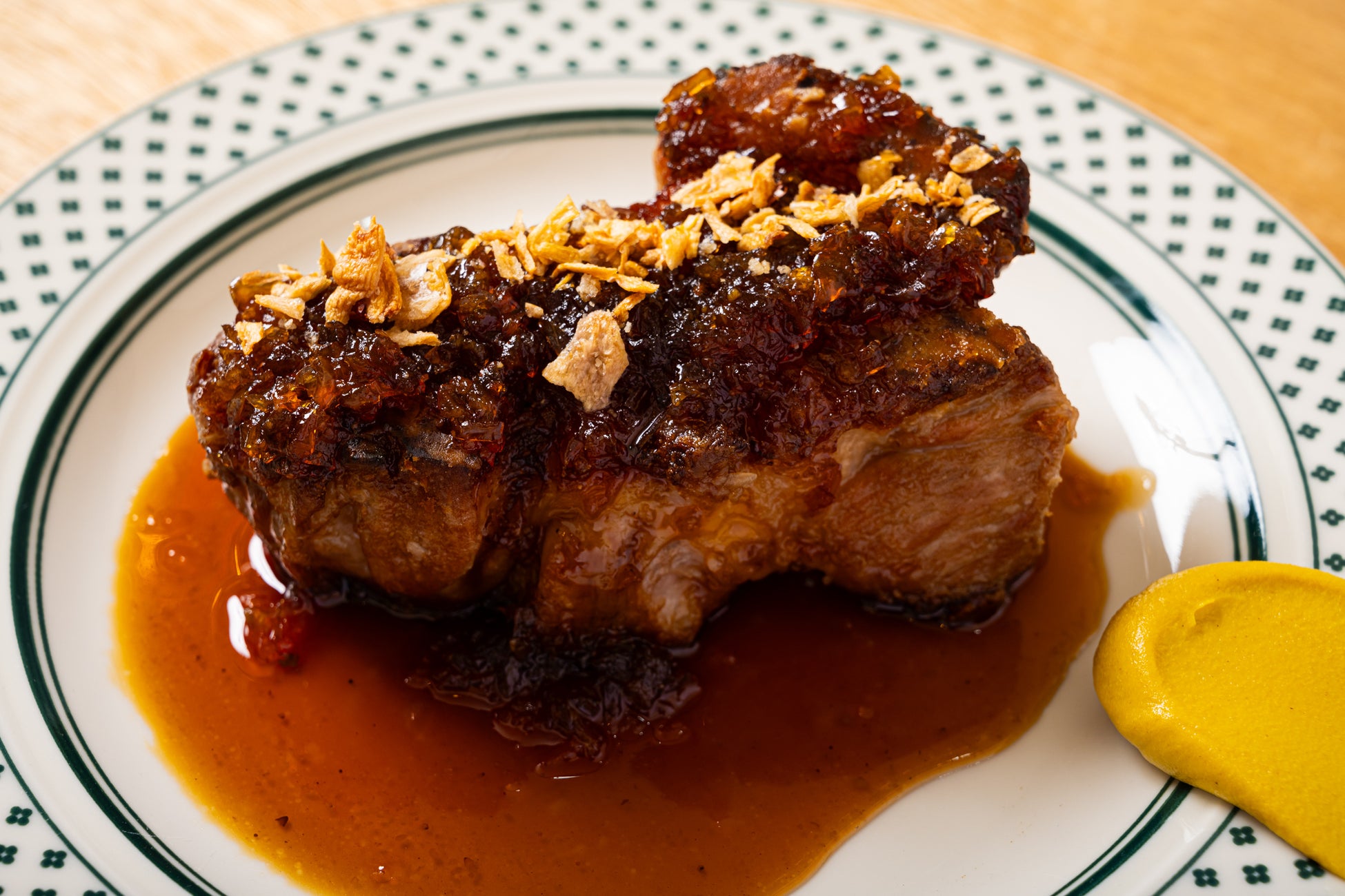 低温でじっくり火入れした豚肉は、驚くほどやわらかくジューシー。仕上げに香ばしく焼き上げ、コク深いタレをまとわせました。厚切りなのに軽やかに食べられる、酒場の新定番トンテキです。