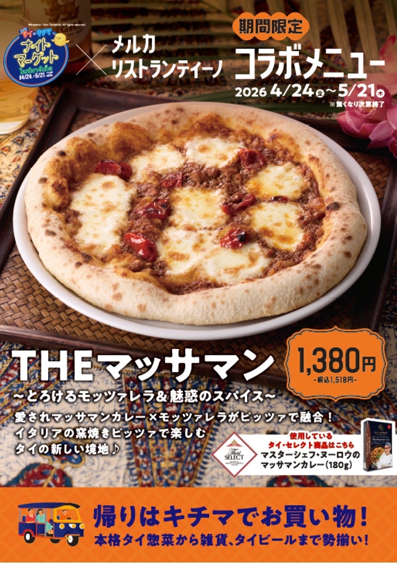 ~とろけるモッツァレラ&魅惑のスパイス~ 愛されマッサマンカレー×モッツァレラがピッツァで融合! イタリアの窯焼きピッツァで楽しむ タイの新しい境地