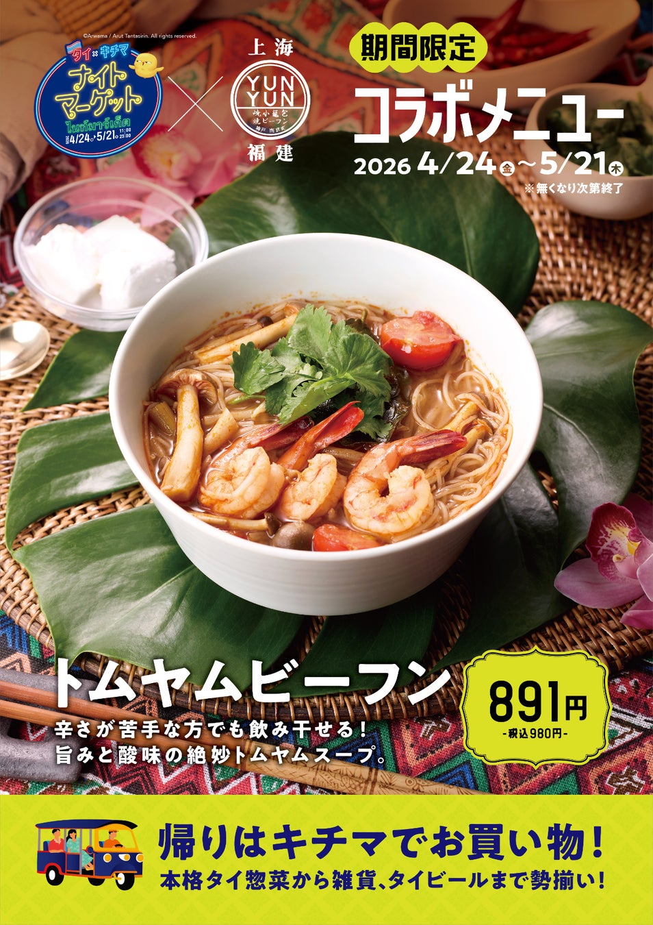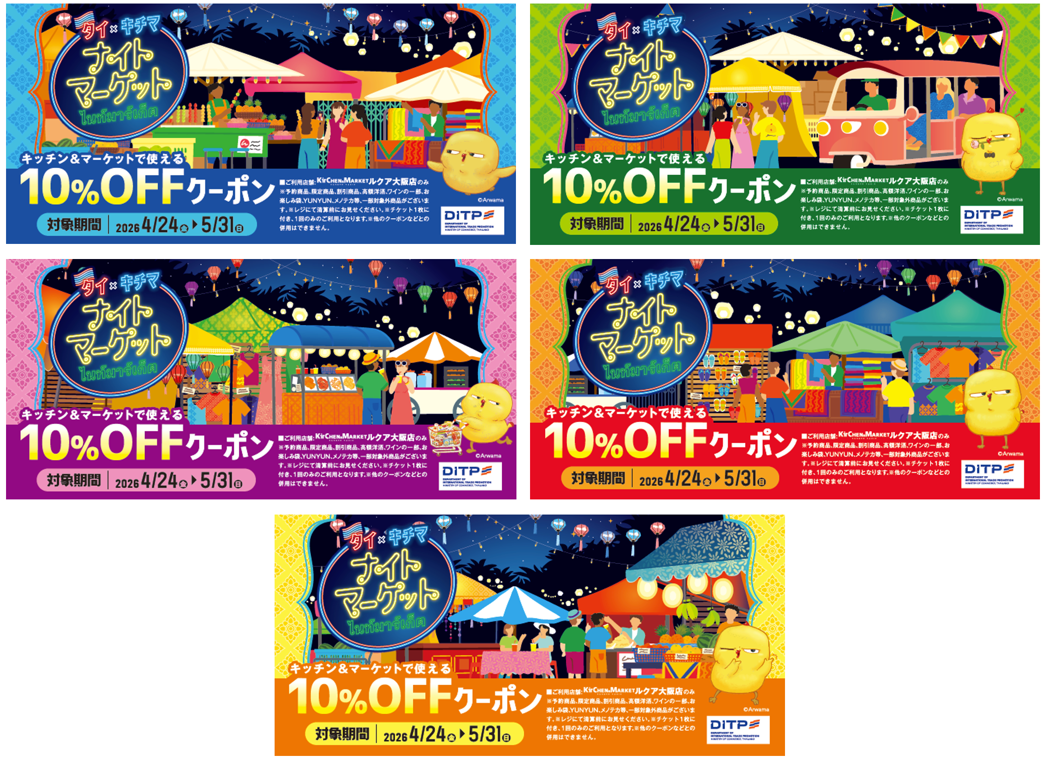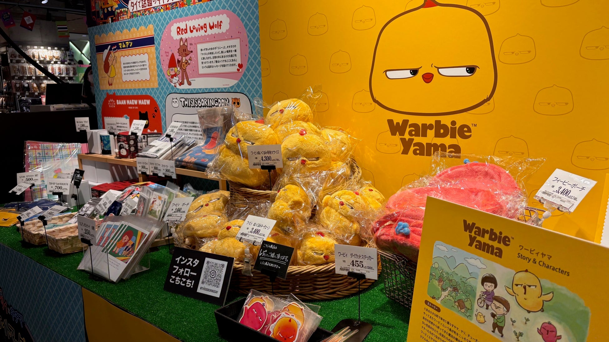 黄色い鳥ワービィやマムアンをはじめ SNSで話題のアイテムからキチマのために取り揃えた限定グッズまで、今だけのラインナップが勢揃い。 タイならではのカラフルでポップな世界観を、ぜひ会場で体感してください!