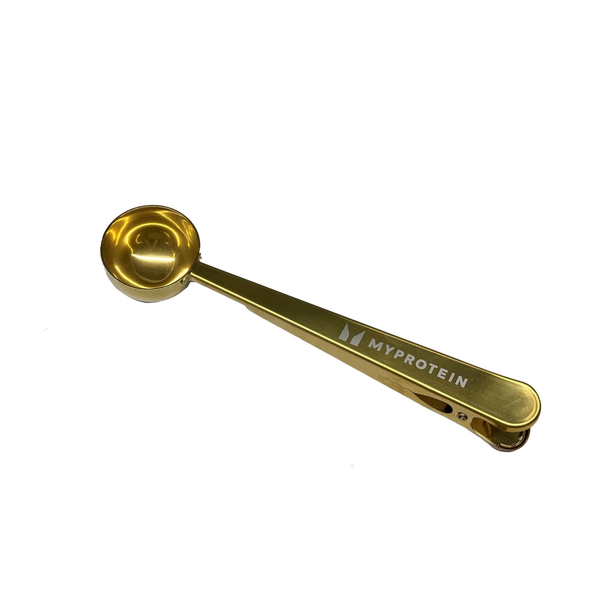 プロテインライフをもっと丁寧に、もっとスタイリッシュに。ゴールドクローム仕上げのステンレス鋼製スクープは、1杯7gをしっかりすくえる設計で、ワニ口クリップでそのまま袋を密封できる便利な2WAY仕様です。