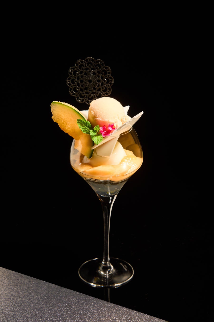 その記念すべき第一弾を手がけたのは、パティシエ・ソムリエの吉田真子氏。完熟メロンの瑞々しさ、テキーラゼリーの芳醇な余韻、燻製ナッツのスモーキーな深み。グラスの中に、メキシコの夜を閉じ込めました。テキーラやメスカルとのペアリングで、その表情はさらに豊かに広がっていく。