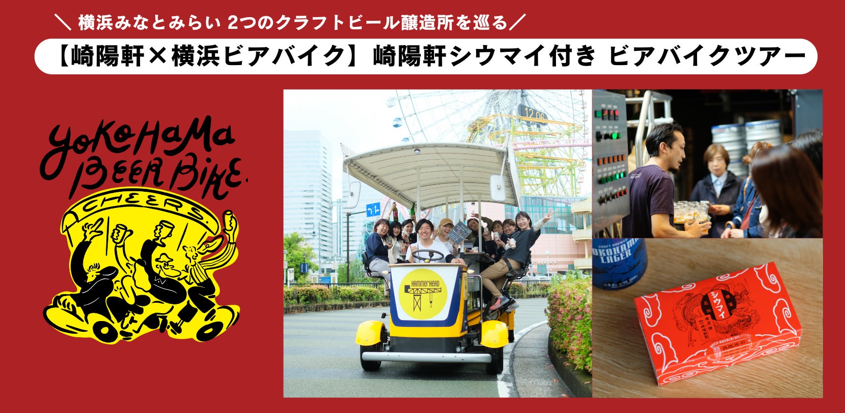 そしてこの秋、「横浜ビアバイク」ではさらに特別なコラボツアーを開催!横浜名物・崎陽軒のシウマイを味わいながらブルワリーを巡る【崎陽軒シウマイ付きツアー】や、2022年に日本大通りに開業した「シタディーンハーバーフロント横浜」とのコラボツアーなど、“横浜ならでは”のローカル体験が詰まった特別プランをお届けします。