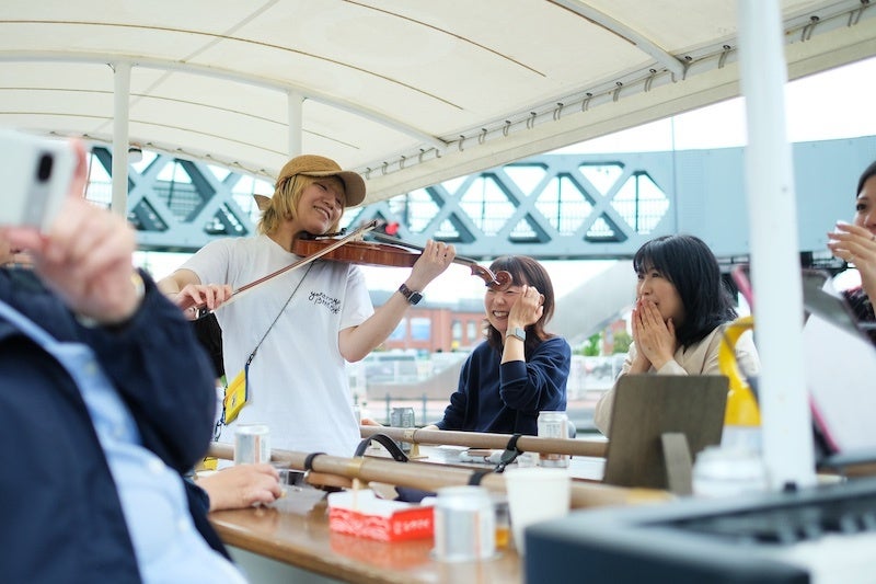 「ビアバイク」は、自転車大国オランダ発祥の“移動式ビアカウンター”。国内で初めて横浜で運用を開始した「ビアバイクツーリズム」では、6人の搭乗者がビールを片手にペダルを漕ぎ、横浜の街並みやブルワリーを巡ります。中央にはツアーをナビゲートするガイドが、後部座席には生演奏を奏でる演者が同乗。街の風景、音楽、そしてクラフトビールがひとつになった、横浜発の新感覚ツーリズムです。