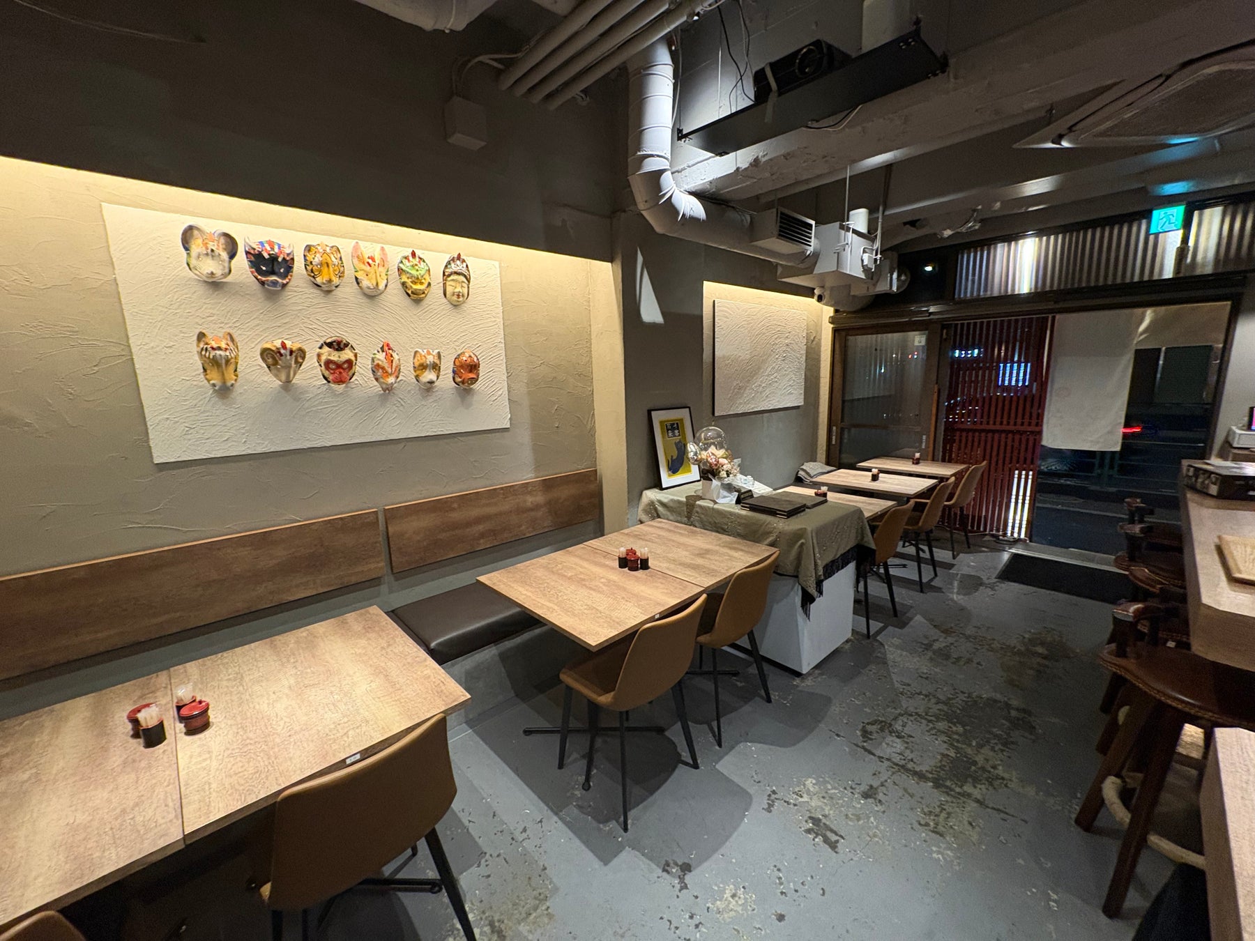 店内は、京都・嵯峨面をイメージした十二支に囲まれた和の空間です。
