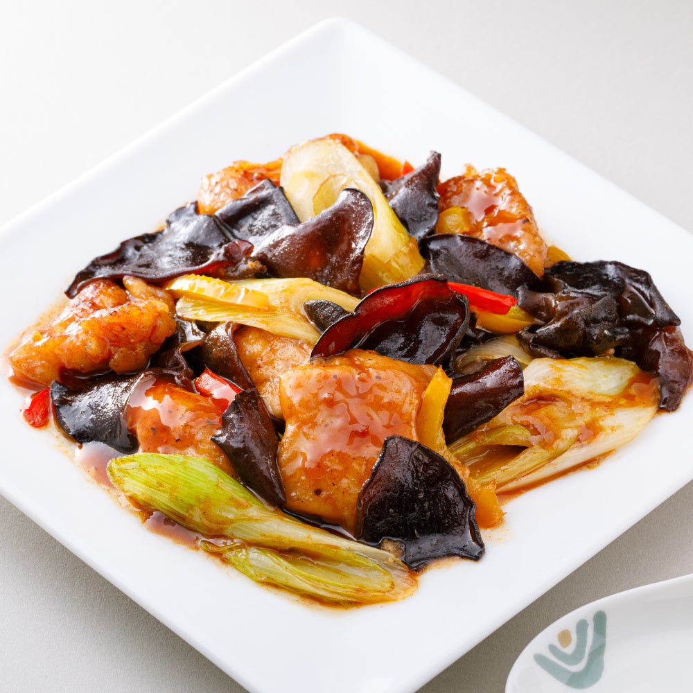 生きくらげと鶏もも肉の甘酢唐辛子炒め |