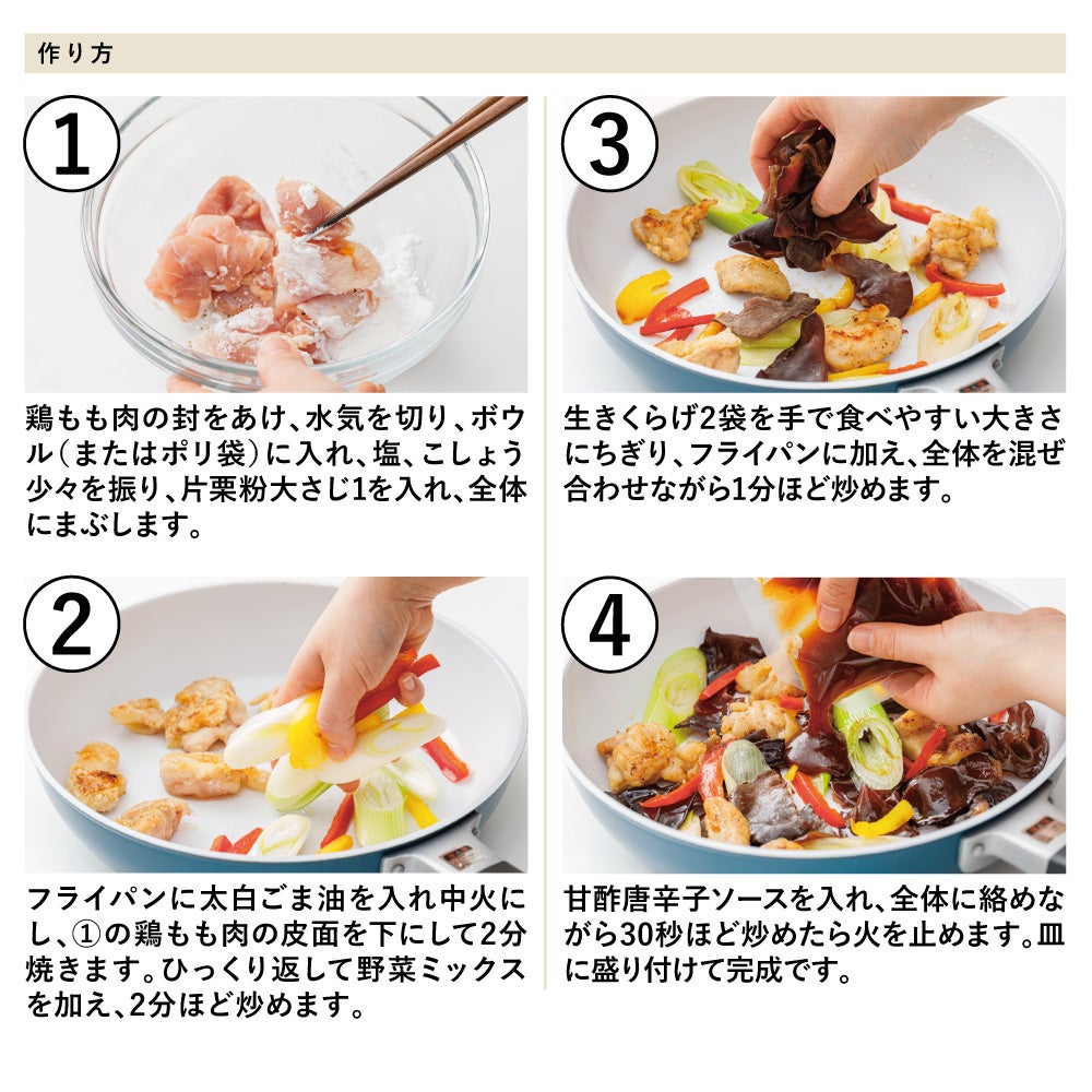 ◆生きくらげと鶏もも肉の甘酢唐辛子炒め(2人前 調理時間 10分)
