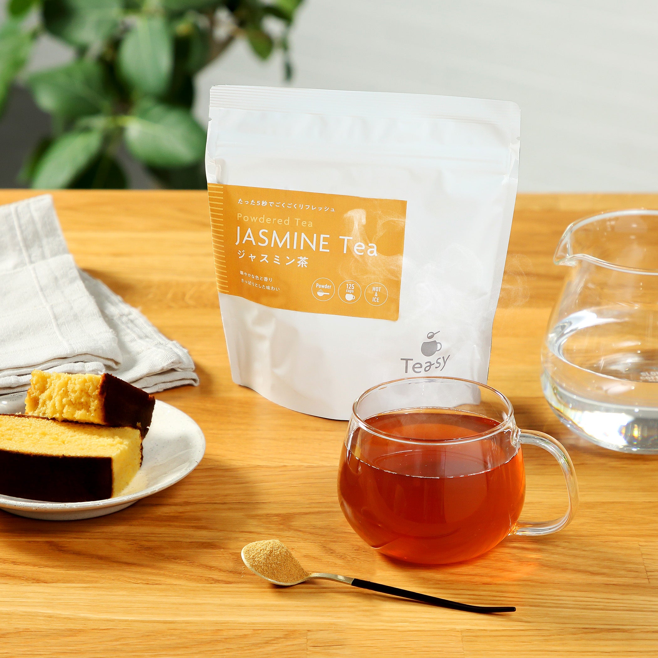 暑い季節にぴったりのジャスミン茶を、パウダーで手軽に簡単に。