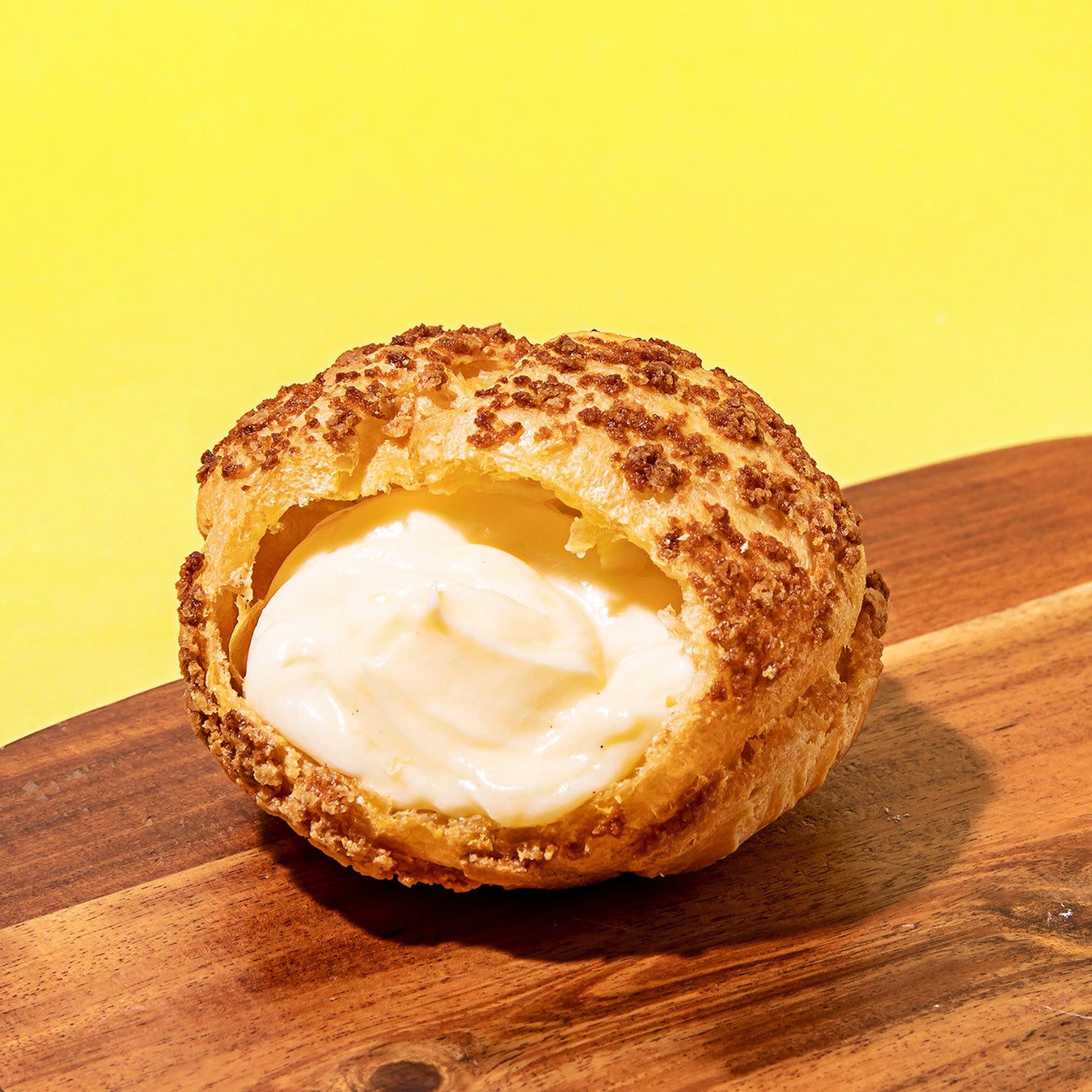 ビアードパパ自慢のサクサクパイシュー生地にカリッとした食感の甘いクッキー生地をトッピング。濃厚な風味が加わったビアードパパもう1つのスタンダードです。