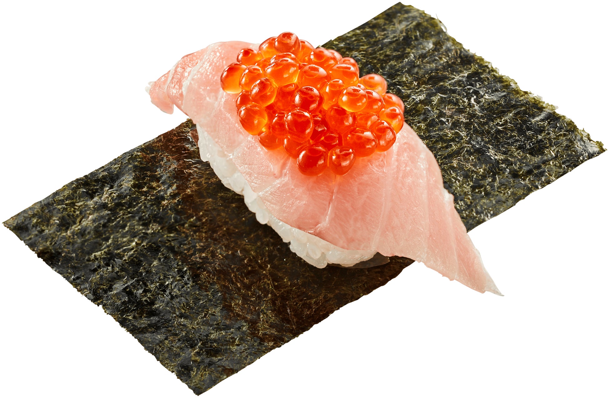 濃厚な甘みの「大とろ」に、弾ける食感の「いくら」を贅沢に添えました。とろける脂といくらの塩気が絶妙に調和する、今だけの華やかな味わいをお楽しみください。