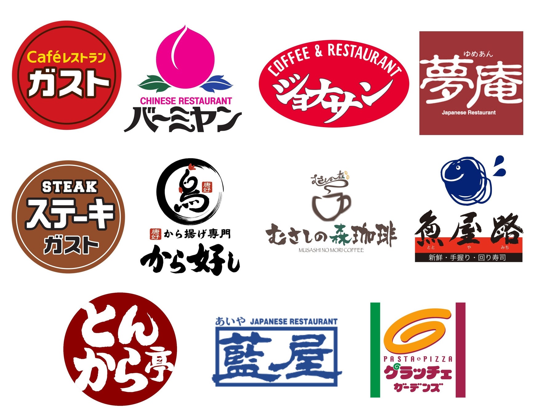 ・対象店舗:ガスト、バーミヤン、ジョナサン、夢庵、ステーキガスト、から好し、むさしの森珈琲、魚屋路、とんから亭、藍屋、グラッチェガーデンズ(全1,009店舗)