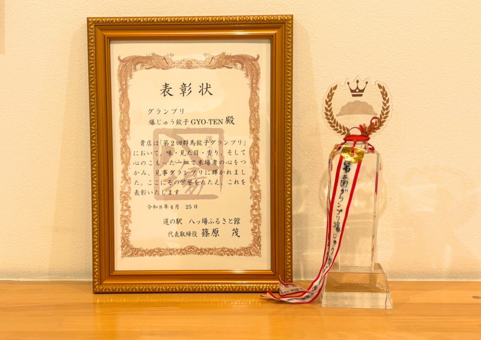 株式会社GYO-TEN(本社:群馬県太田市、代表取締役:日野原隆童)が製造販売を手がかける「爆じゅう餃子」がこの度、道の駅八ッ場ふるさと館が主催する第2回群馬餃子グランプリにおいて、『グランプリ』を受賞いたしました。本賞は2026年4月25日に開催された『第4回八ッ場ふるさと館 餃子フェス』にて群馬県を代表する事業者6社の中からお客様の投票によりグランプリを決めるもので当日は約6,000人にご来場いただきました。数ある餃子の中から「爆じゅう餃子」を選んでいただき、心より感謝申し上げます。