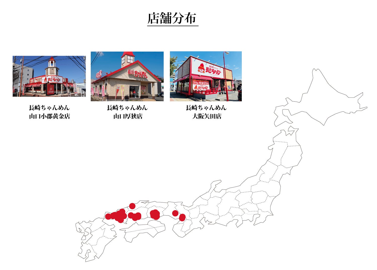 山口県17店舗 広島県5店舗 島根県1店舗 岡山県8店舗 兵庫県1店舗 大阪府2店舗