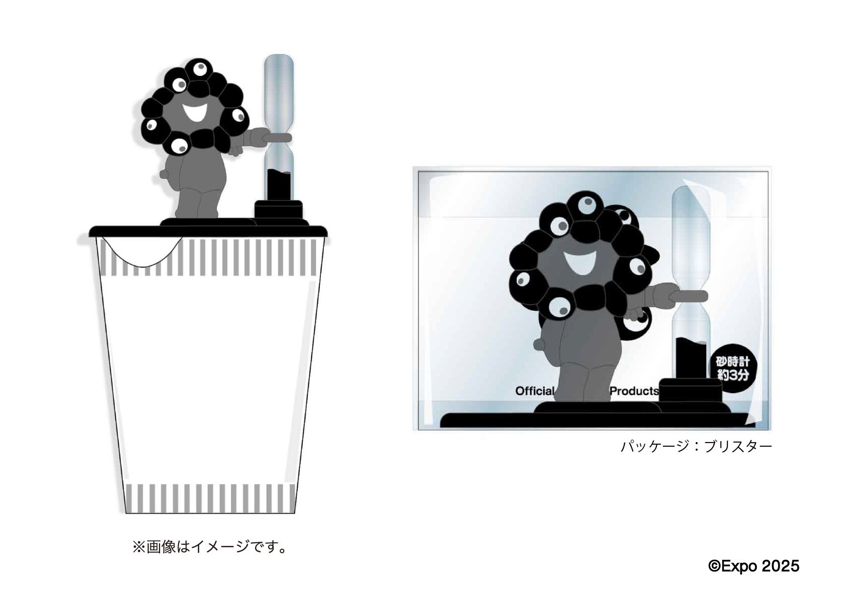 大阪・関西万博公式キャラクター、黒ミャクミャクの「砂時計付きカップ麺ストッパー」と「シリコーンポーチキーチェーン」が新登場!