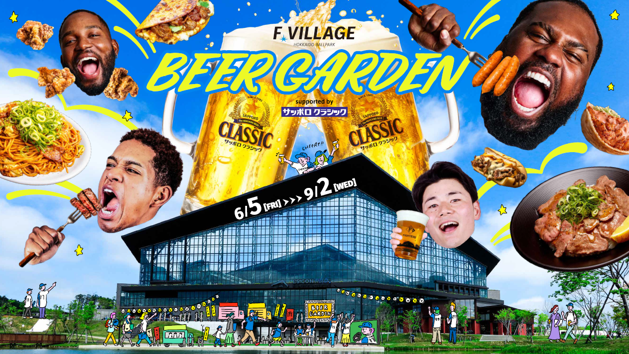 普段はなかなか味わえない北海道初出店の絶品グルメが、期間を3つに分けてFビレッジへ集結します。約200席の開放的なテラス席で、試合日・試合がない日を問わず、多くの方にご利用いただけるビアガーデンを展開します。