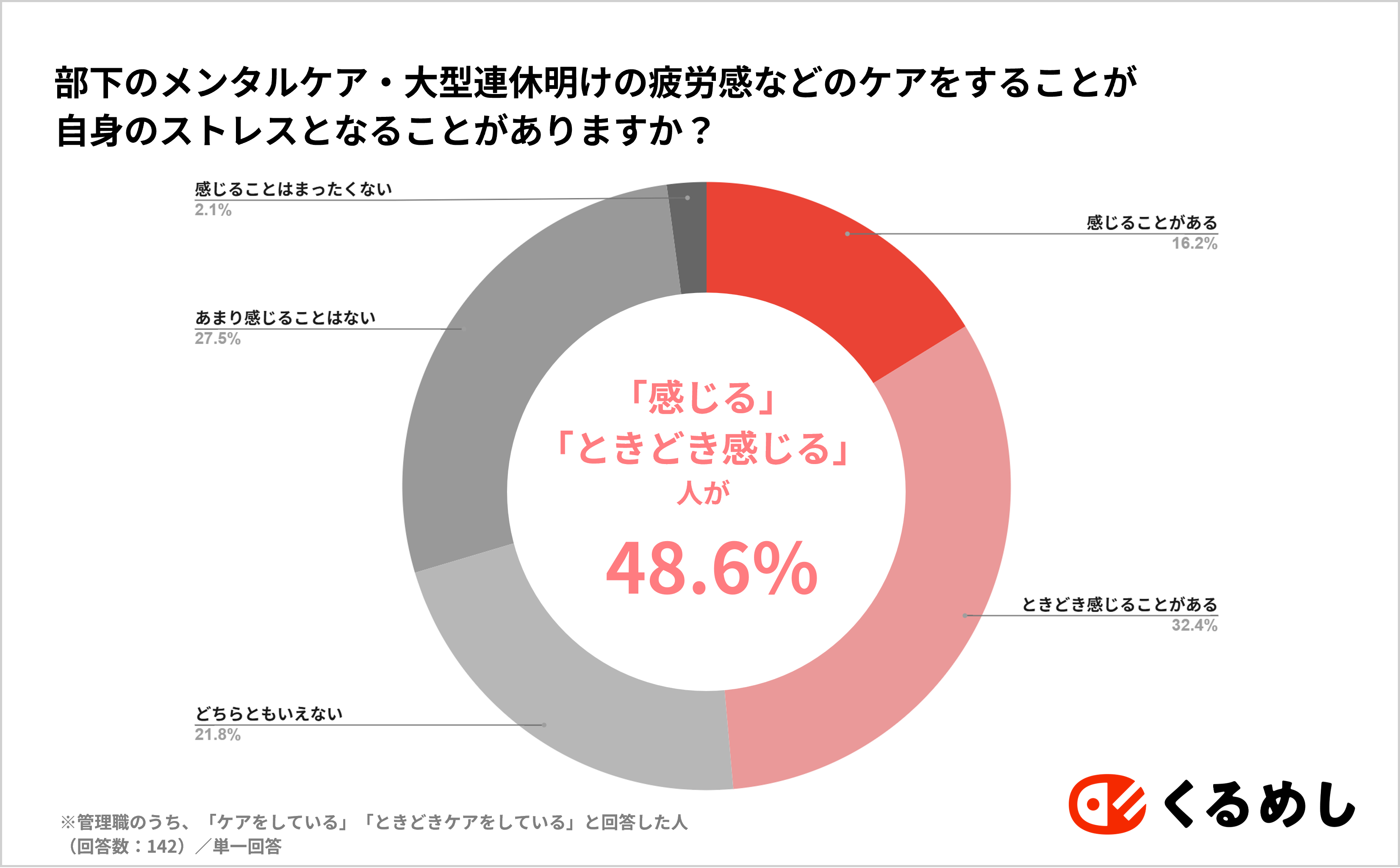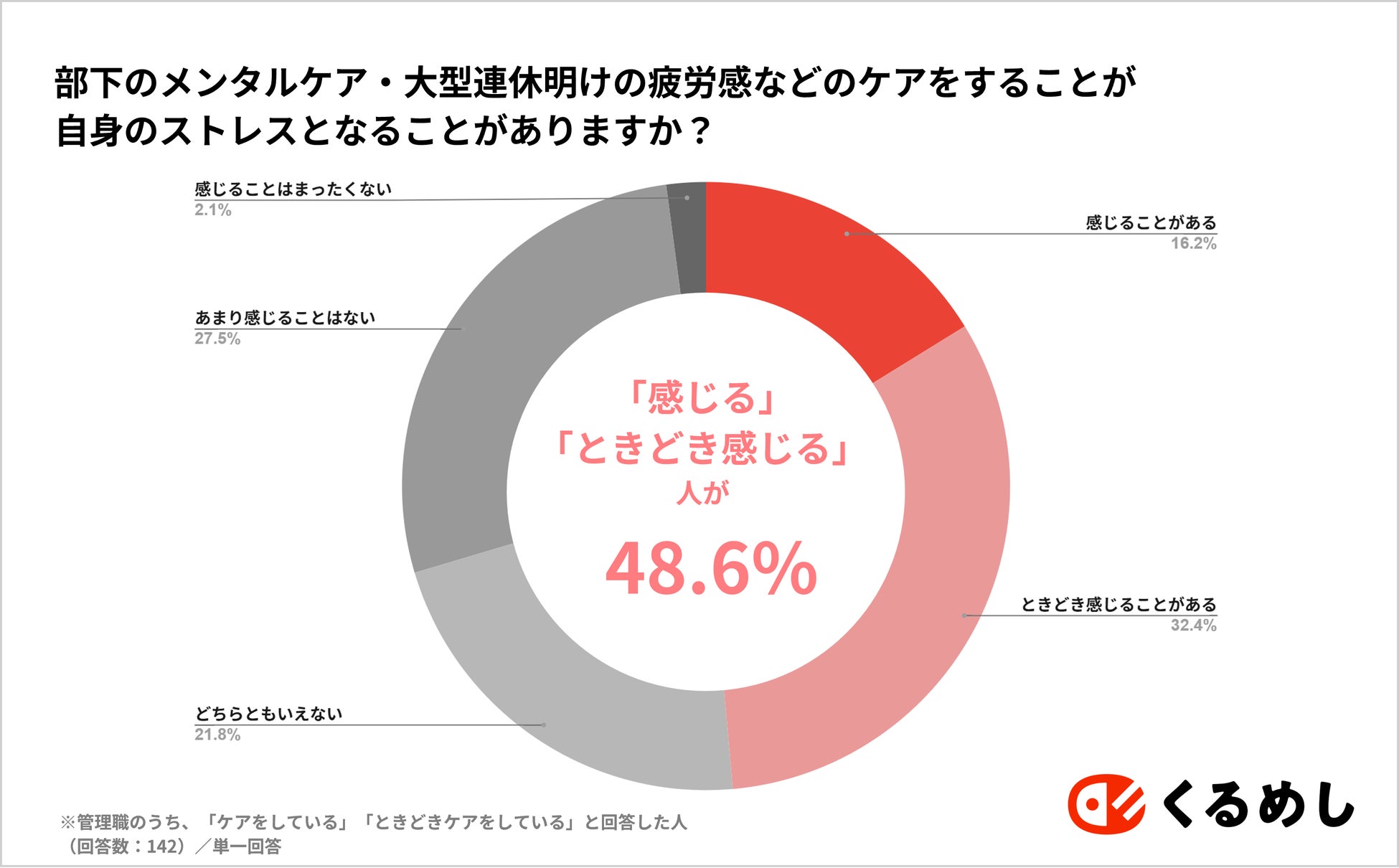 一方で、このような部下のメンタルケア自体が、48.6%の管理職にとってご自身のストレスとなっていることが明らかになりました。