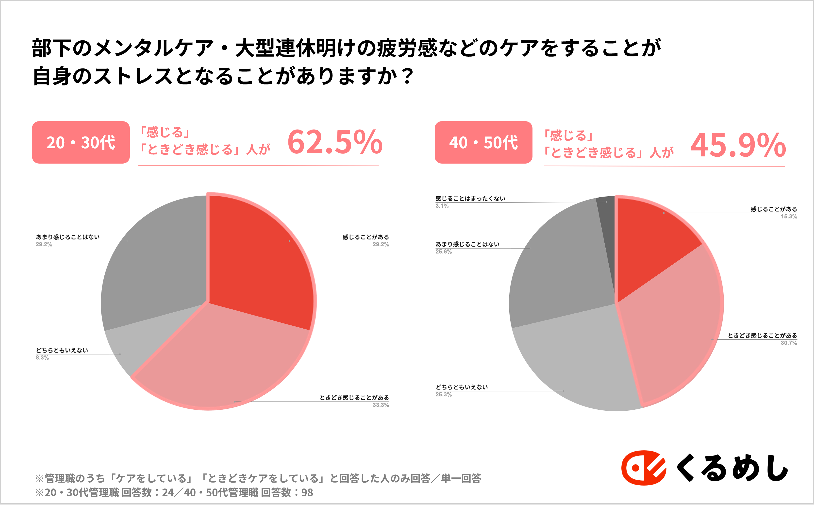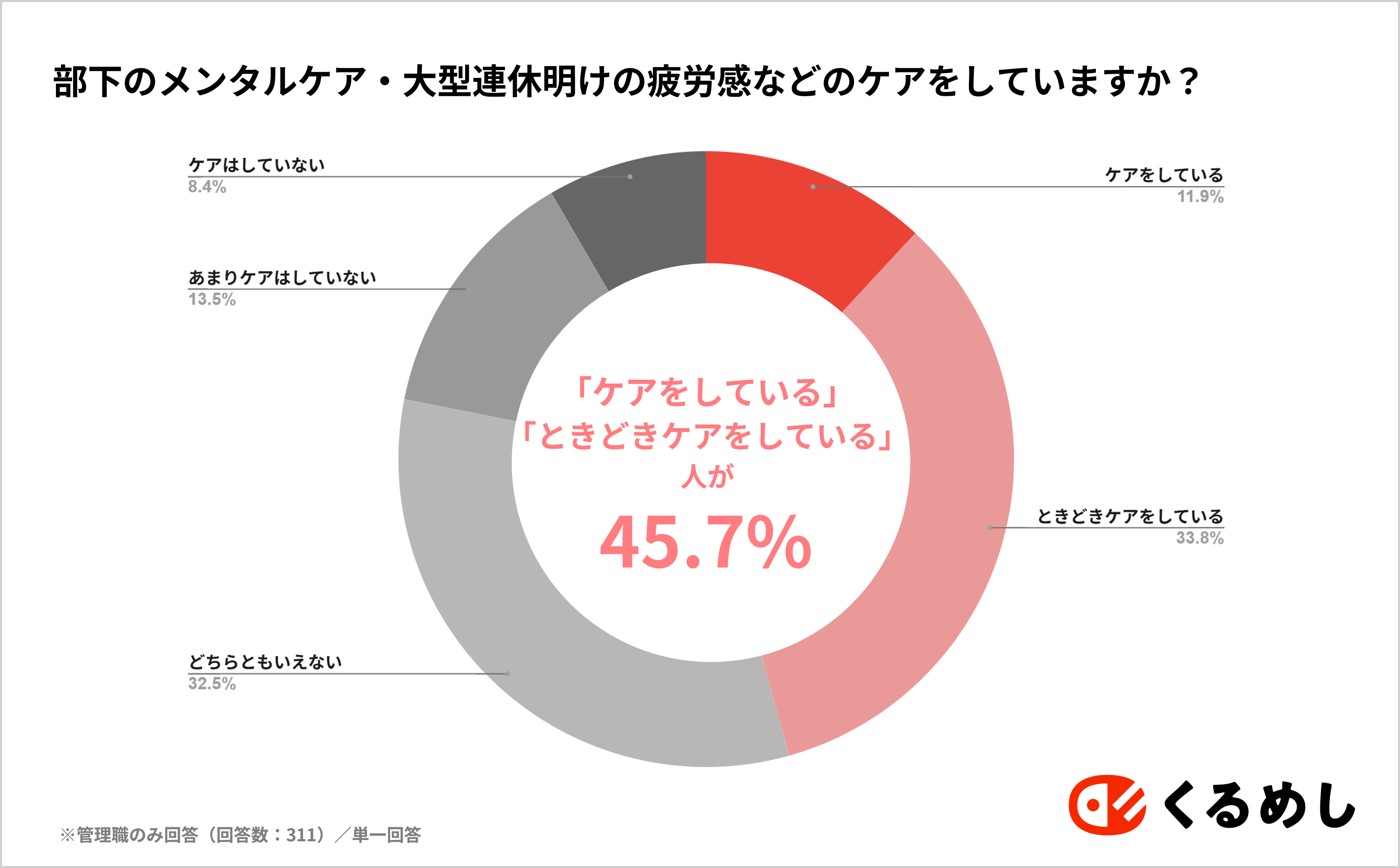 45.7%の管理職が大型連休明けに、部下のメンタルケア・疲労感ケアをしていることがわかりました。