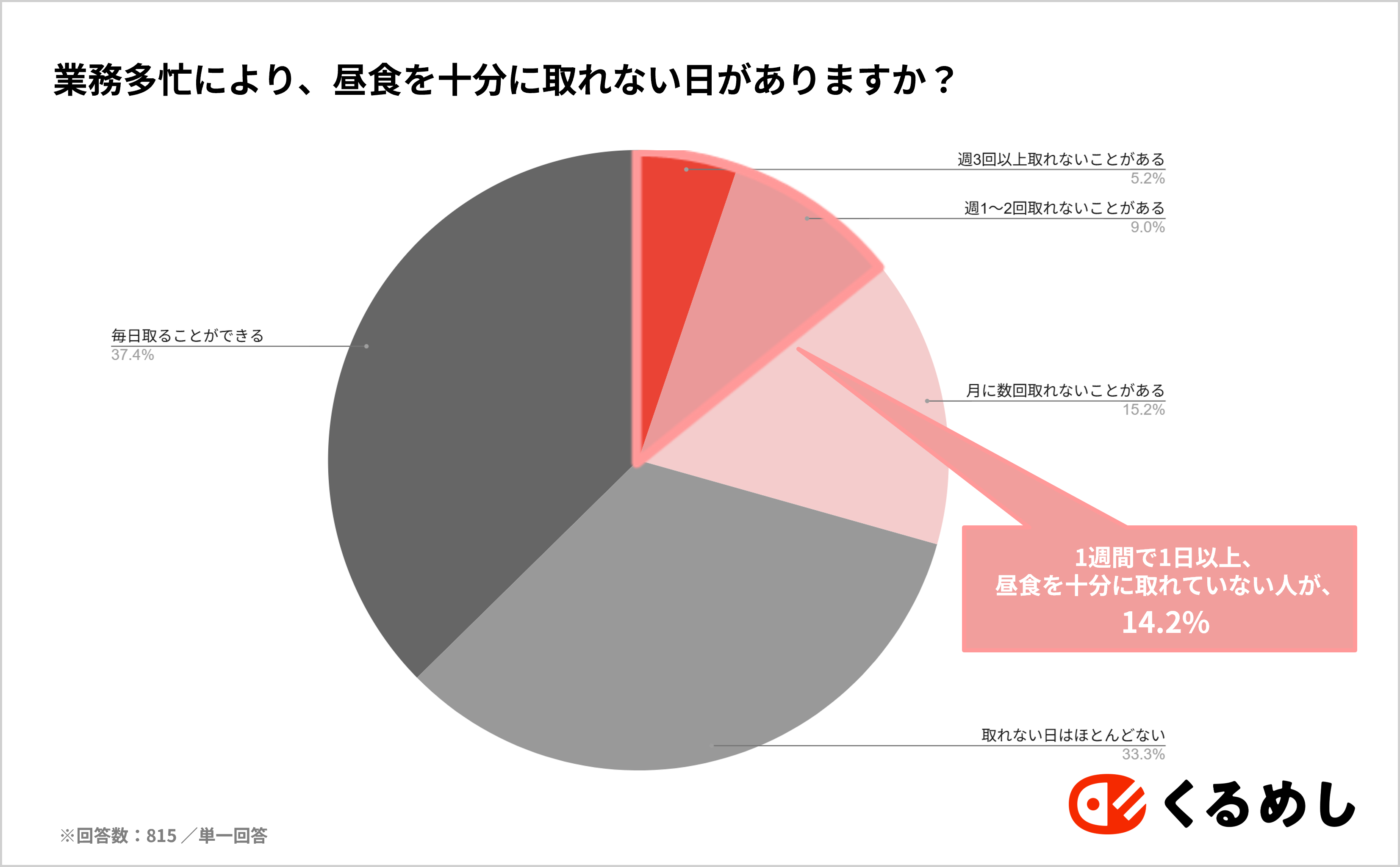 週1回以上昼食を十分に取れない日がある人は、14.2%に上ります。