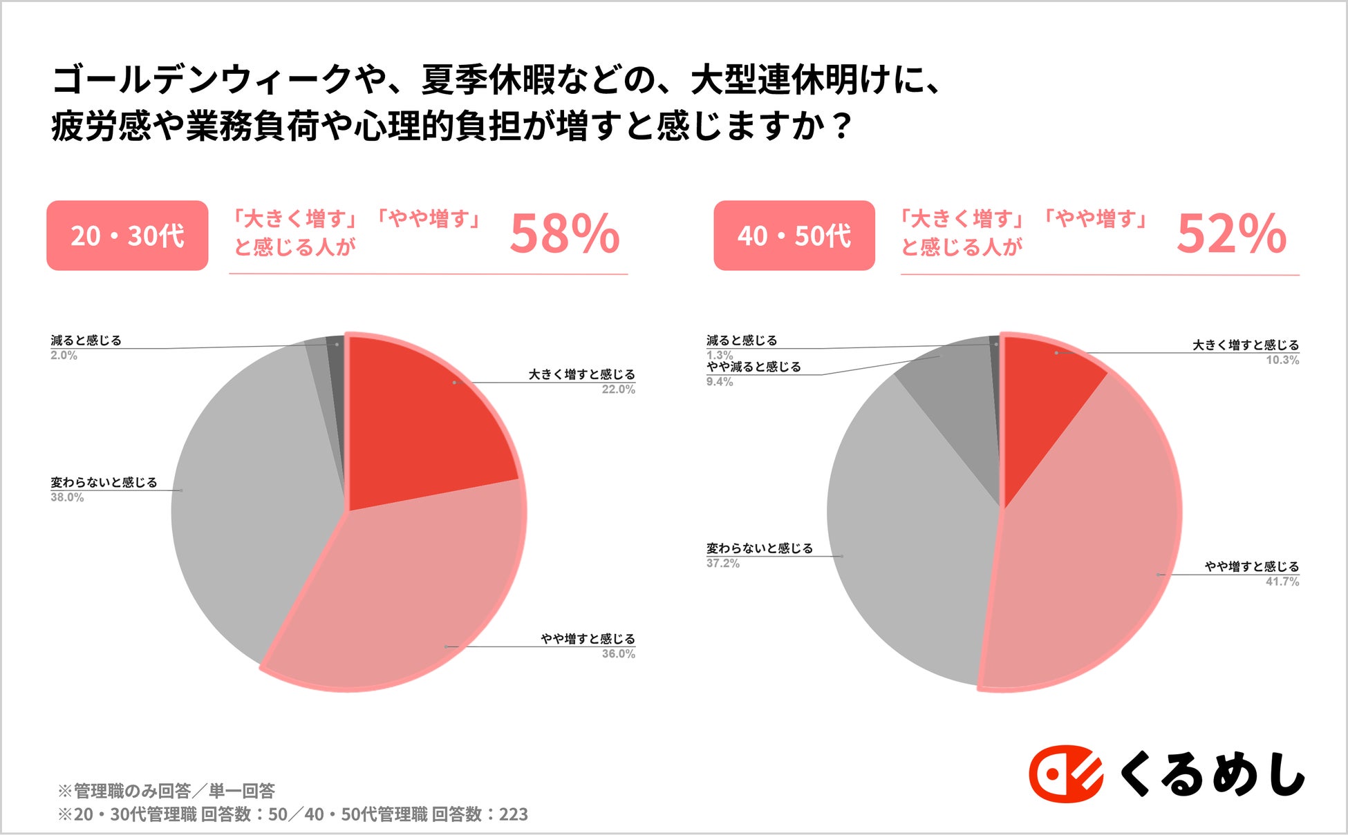 ゴールデンウィークや夏季休暇などの大型連休明けに、疲労感や業務負荷や心理的負担が増す人は54.2%