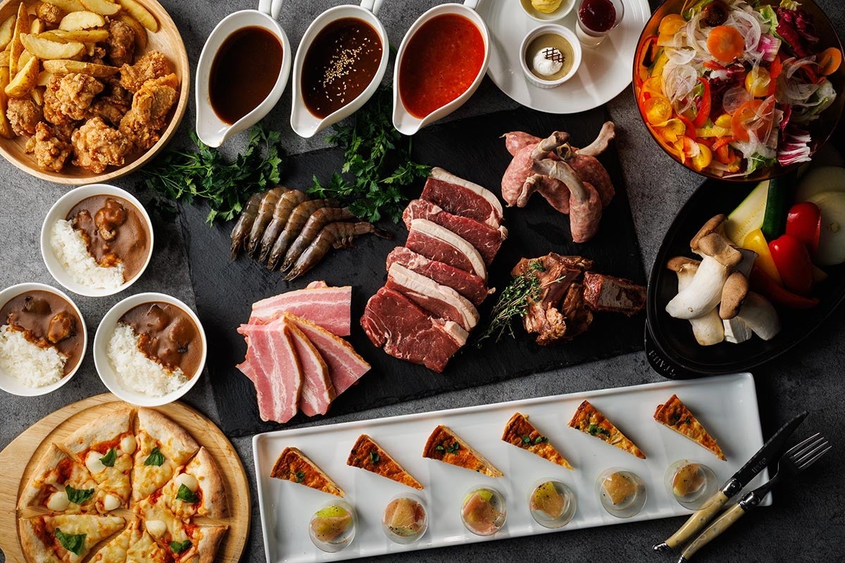 炭起こしはホテル側で行うため、お集まりいただいた瞬間からパーティーを開始できます。お客さまご自身で焼いて楽しんでいただくセルフスタイルにて、シェフが厳選した牛サーロインや国産豚のスペアリブ、骨付きソーセージやエビ、各種野菜などボリューム満点です。サイドメニューも前菜2種盛り合わせやピザマルゲリータなどバラエティ豊かに取り揃えております。オプションで蝦夷アワビや殻付きホタテなどのシーフードもご用意可能です。ファミリー向けにキッズメニューもラインナップしました。お子さまもBBQ体験を味わっていただけるよう、ビーフステーキ用に生肉をセットにしております。テラス席が心地よいこの季節に合わせて、会社帰りの親睦会や気軽にリゾート気分を味わいたいご家族でのご利用に、開放感あるテラスでのBBQ体験をご提案いたします。