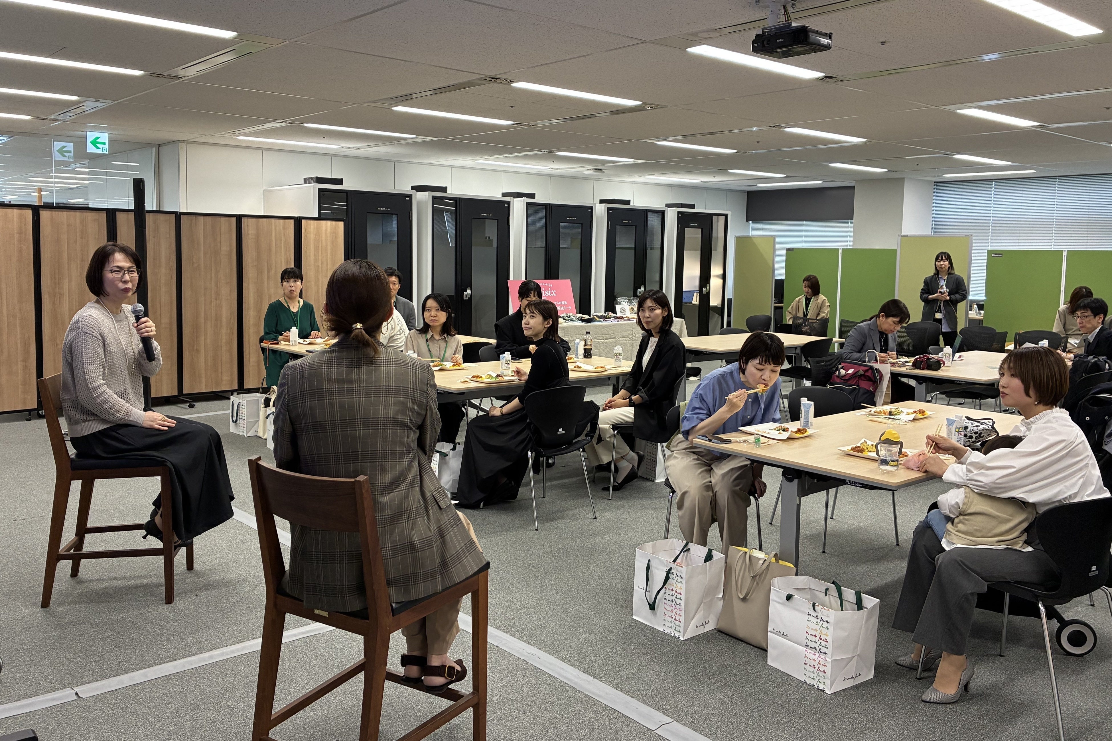 復職後は、つい何事も完璧にこなそうと無理をしがちであることから、あえて前向きに“頑張らないこと”を【これは「頑張りま宣言」】として一人一人が発表しました。「家電フル活用で家事を頑張らない」「これまでの一汁三菜をやめて“ちゃんと作る私”を卒業する」「おもちゃの片付けを頑張らない」といった日々の家事に関する内容や、「休日を頑張らない」「家族時間を最優先するために、仕事は就業時間内で完結させる」などワークライフバランスを重視する声も多く聞かれました。参加者は頷きながら宣言に耳を傾け、無理のない働き方・暮らし方を選択することの大切さが共有される場となりました。