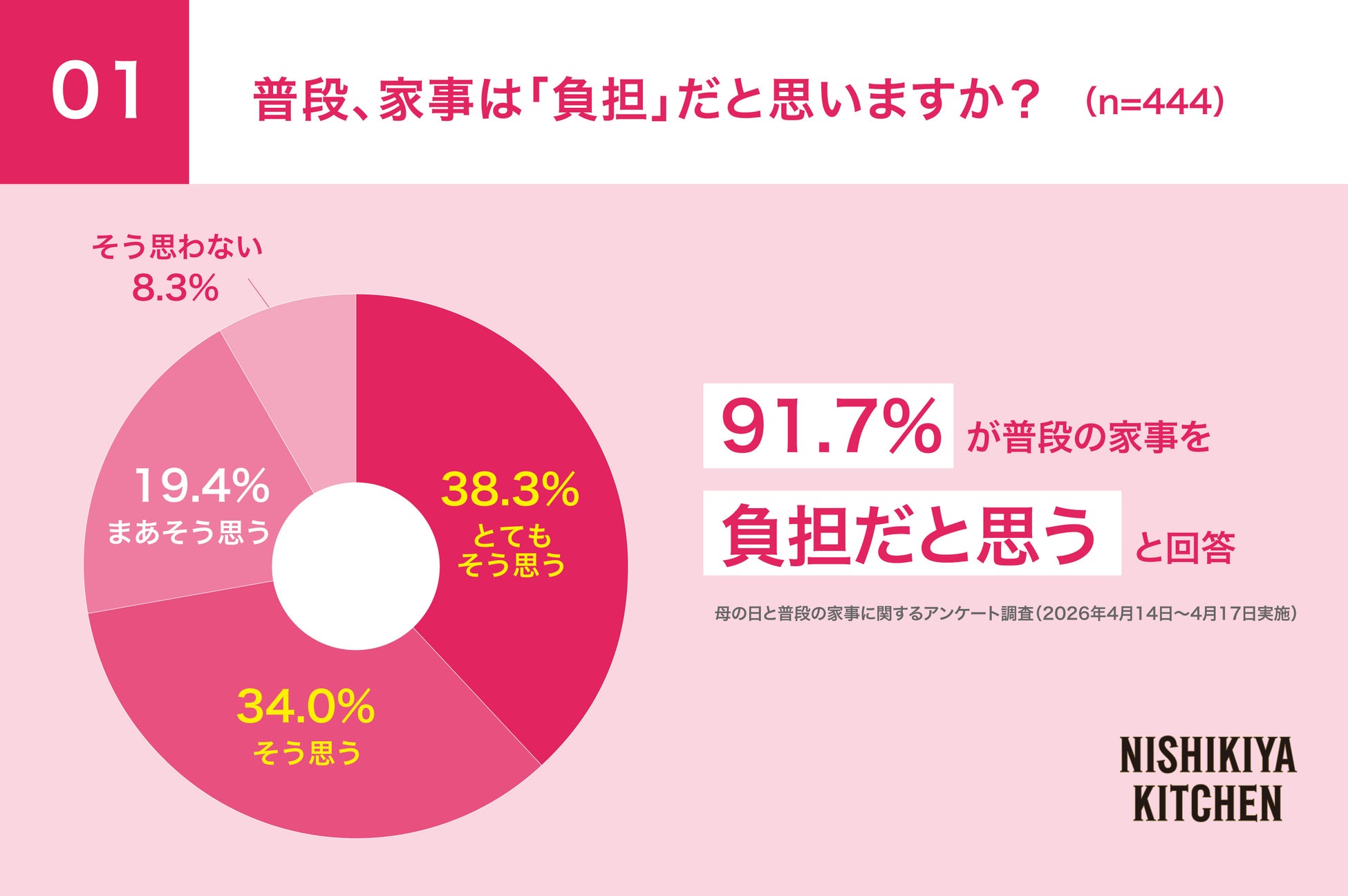 1) 普段「家事は負担だと思う」人は91.7%