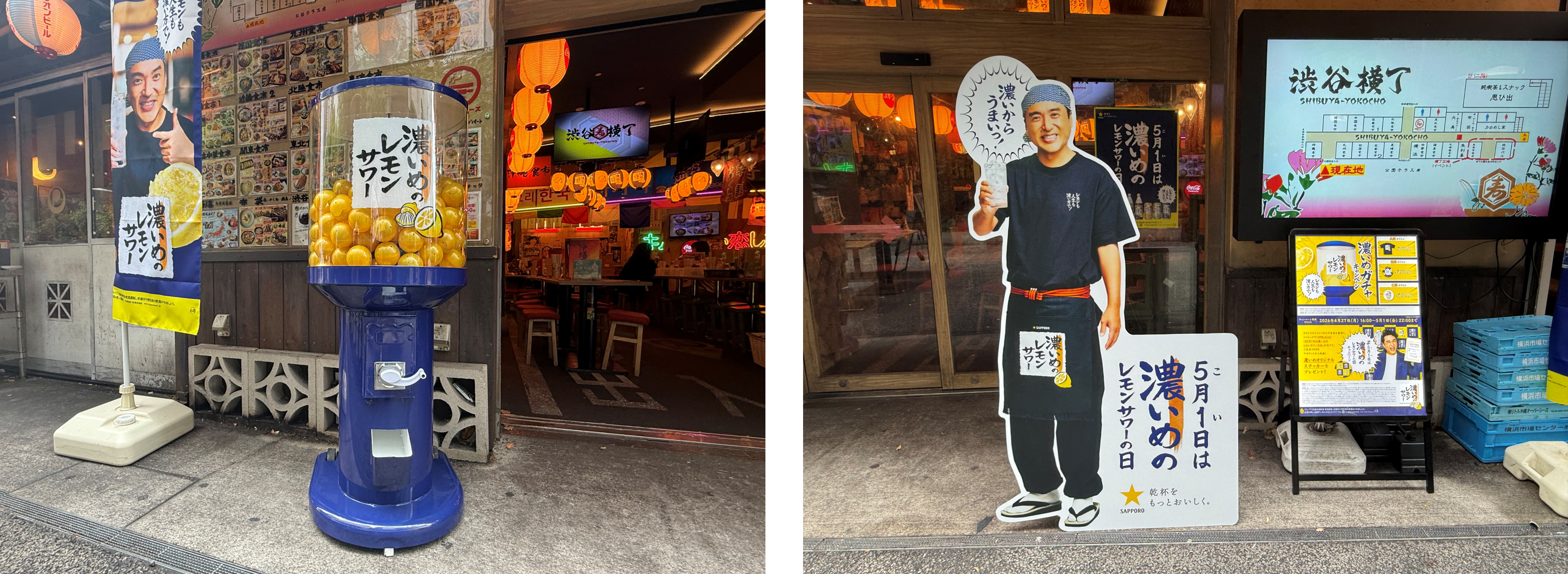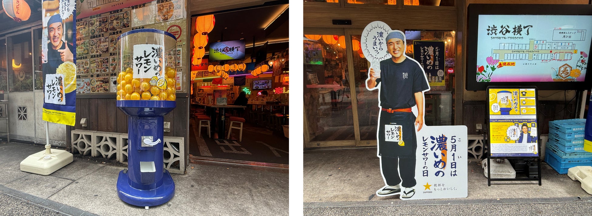 「濃いめ横丁」では、横丁全体を「サッポロ 濃いめのレモンサワー」の世界観で装飾します。提灯やのぼり、ポスターなどの装飾により、渋谷の中心で“濃いめ”の世界観を体感できる空間を演出します。