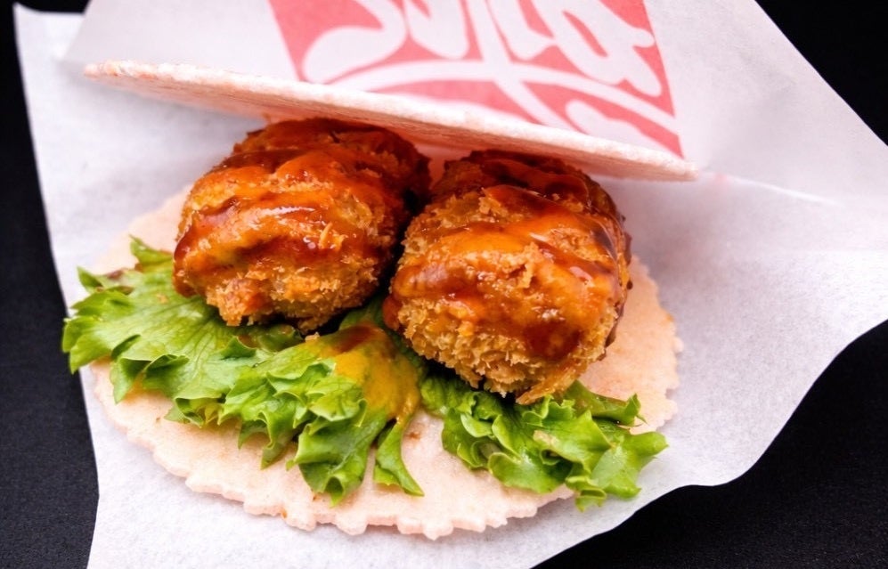 パリッと香ばしい磯の香りが漂う「かにべえ」で、ホクホクでジューシーなかにクリームコロッケを贅沢にプレス。スナック感覚でありながら、満足感もしっかり味わえる、食べ歩きにもぴったりの進化型ワンハンドフードです。
