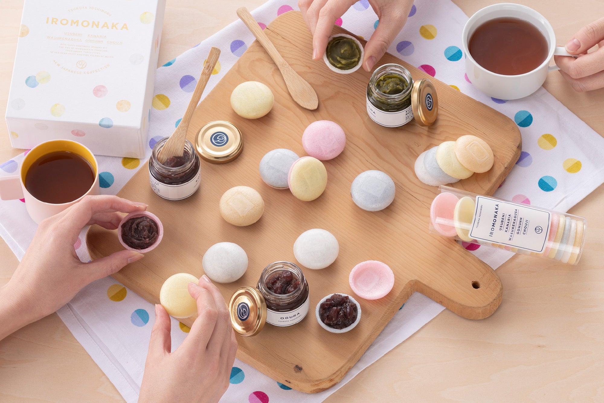 マカロンみたいにころんと可愛い、お取り寄せギフトでも大人気のお手づくり最中セット「IROMONAKA(いろもなか)」。楽しく、かわいく、SNS映えもばっちりな一品をかわいい水彩風ドット柄パッケージで包みました。オンラインショップ限定の、母の日専用掛紙をお選びいただけます。