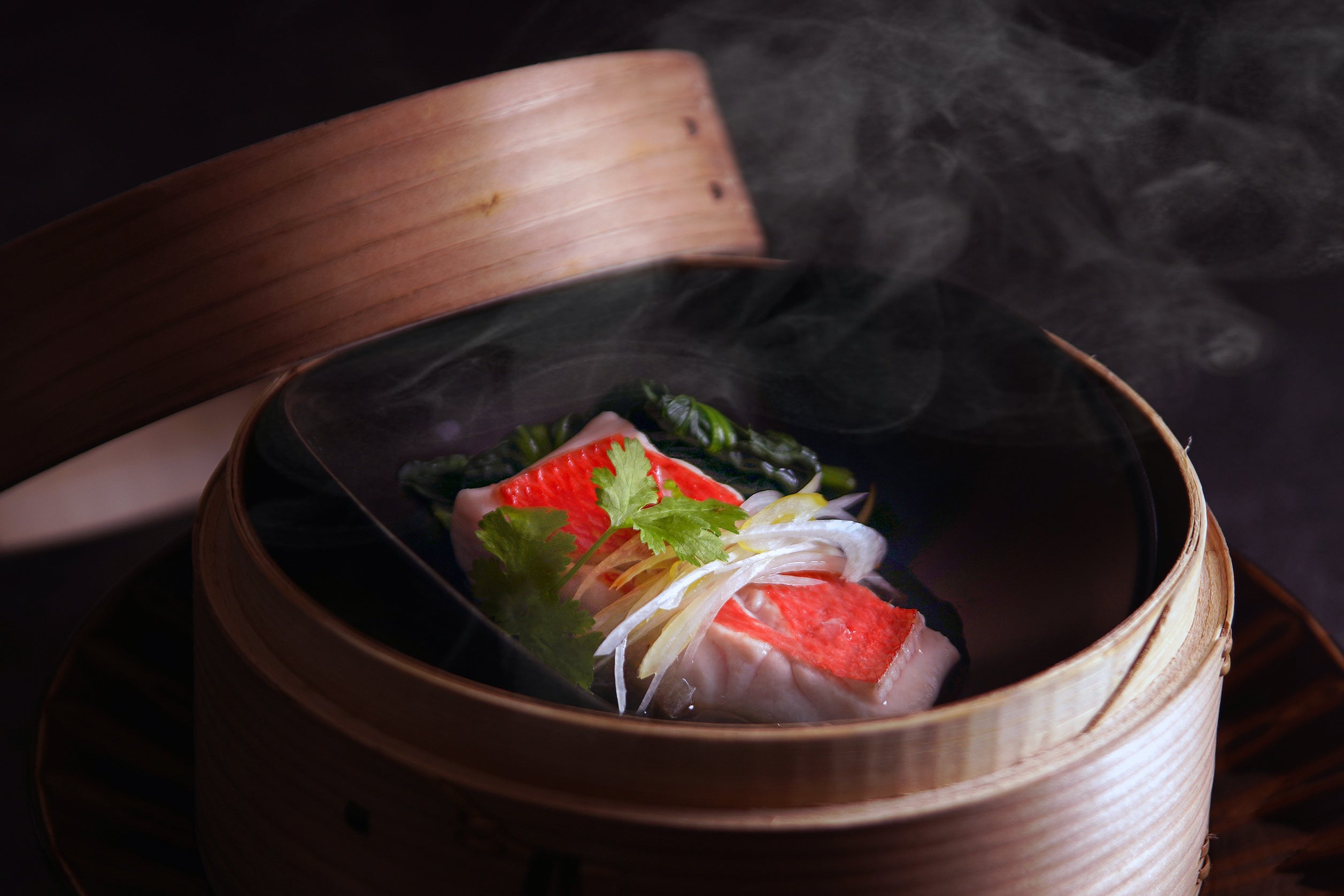 ●白甘鯛の海鮮醤油蒸籠蒸し
