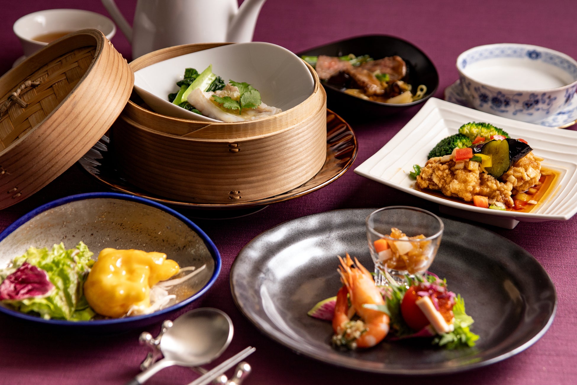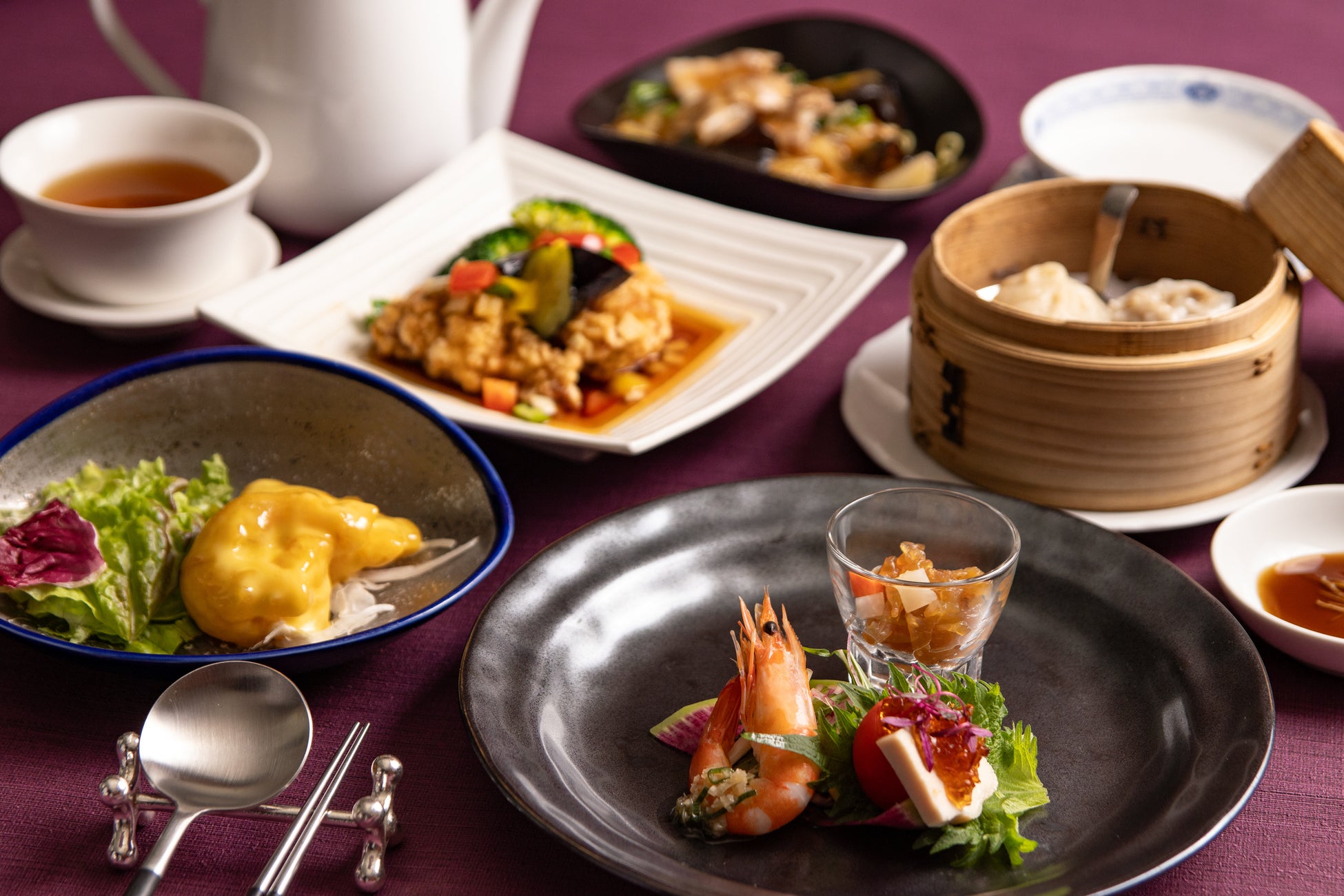 芳醇な甘さのマンゴーを加えたマヨネーズソースをまとった「大海老のマンゴーマヨネーズ」をはじめ、蒸し物、炒め物などバラエティ豊かなランチをお楽しみください。中国料理 燦宮が誇る自慢のお料理を、カジュアルにお楽しみいただける平日限定のランチコースです。