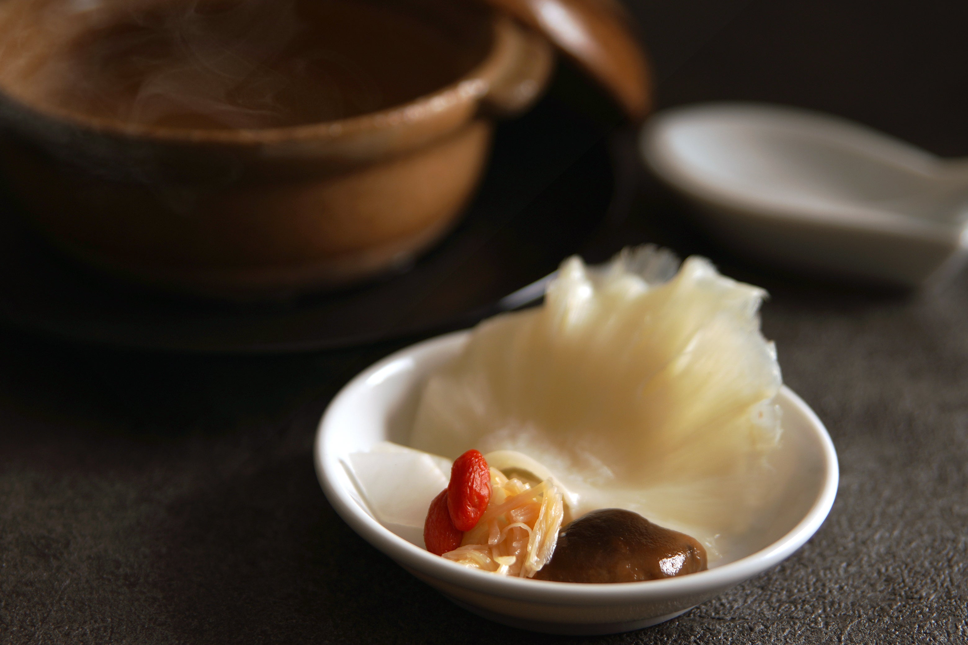 ●宮城県気仙沼産 ふかひれ入り薬膳蒸しスープ