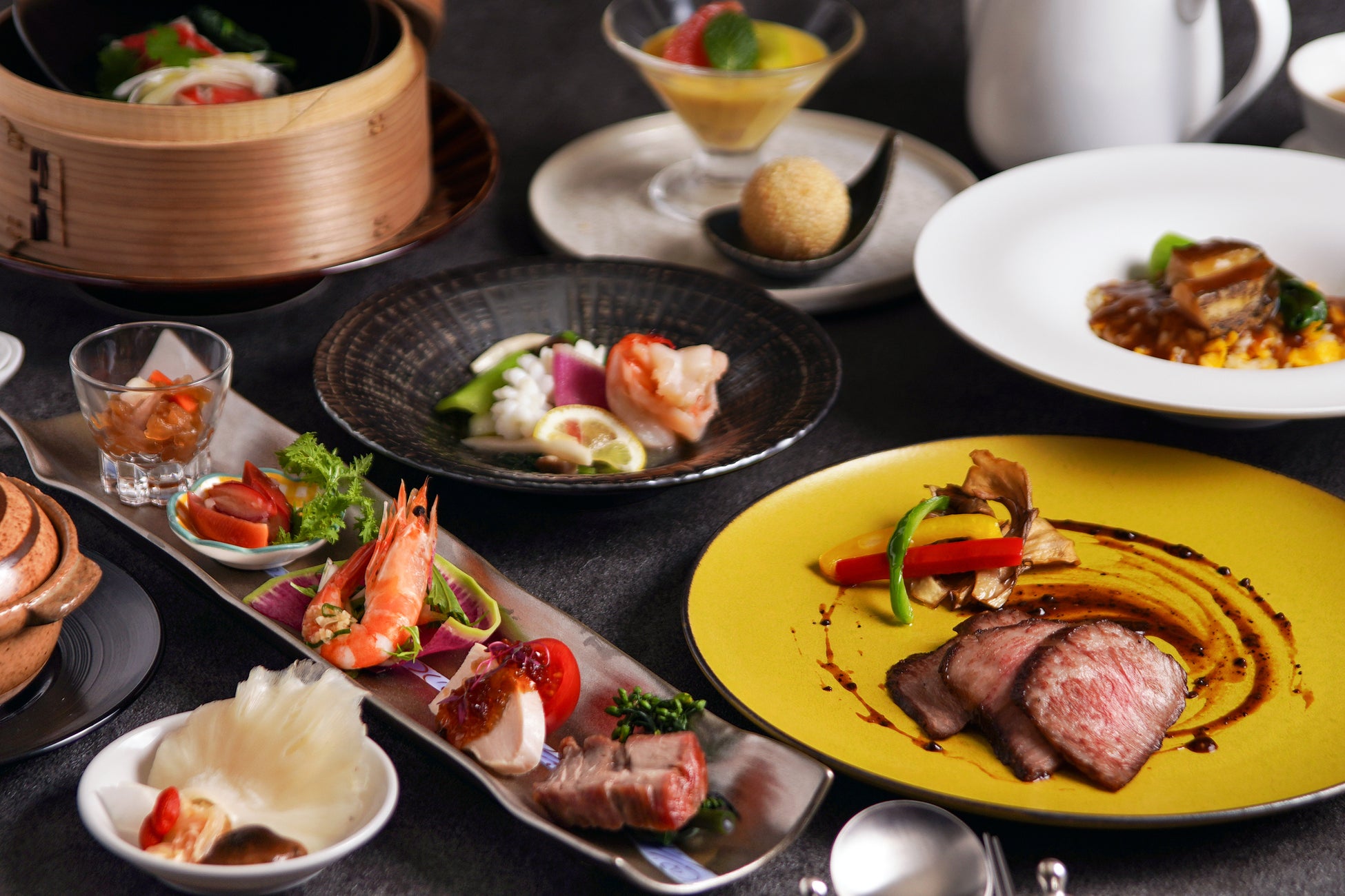 落ち着いた空間と美しい眺望に包まれながら、一皿ごとに丁寧に仕立てられた料理をゆったりとお楽しみいただけます。記念日やご会食、上質なひとときをお求めになるランチシーンに、穏やかで心安らぐ時間をお過ごしください。