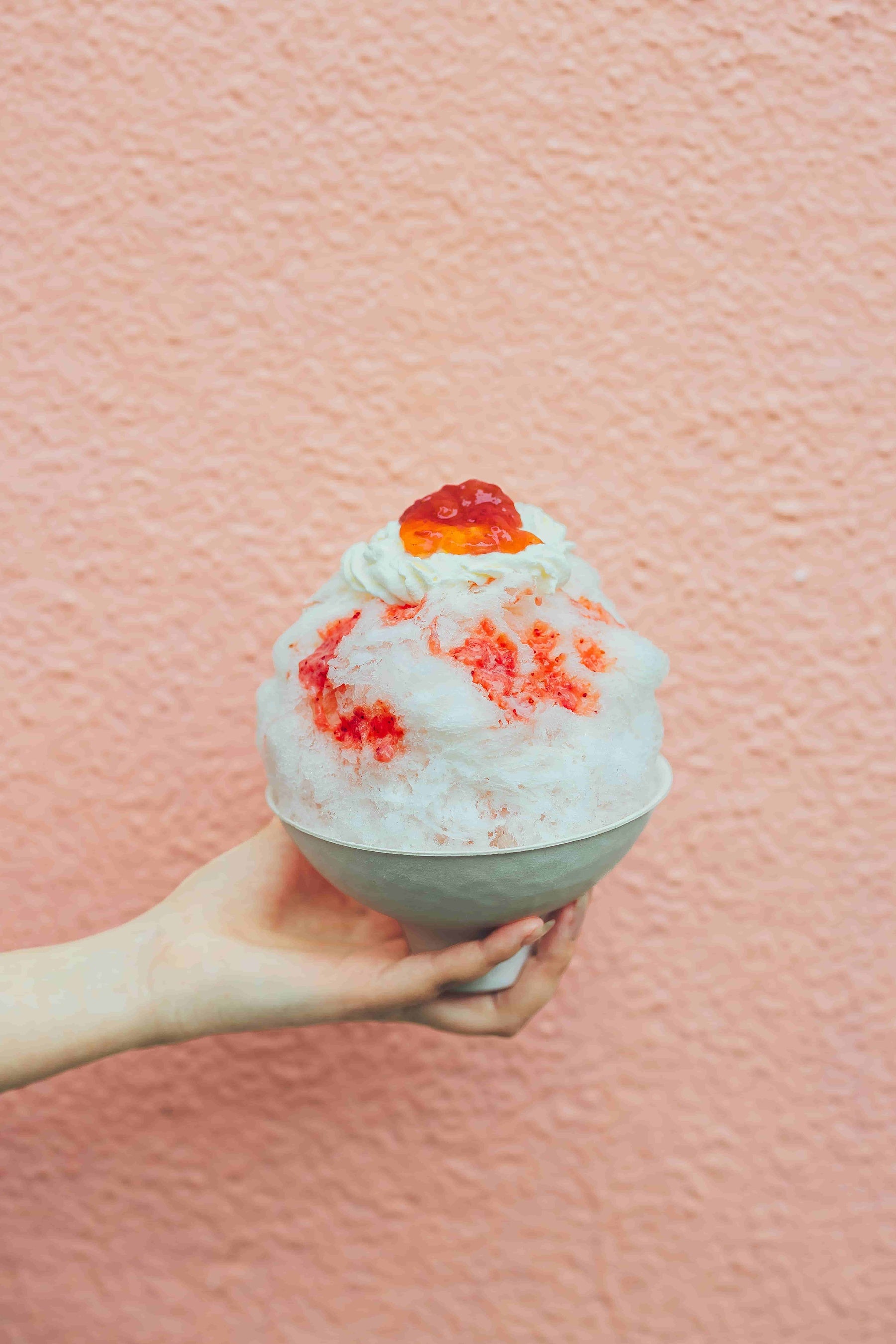 仕上げには、ふわりと軽いエスプーマクリームと自家製ジャムをトッピング。柑橘の爽やかさとコクのある甘みが重なり合う、最後のひと口まで飽きのこない贅沢なかき氷です。