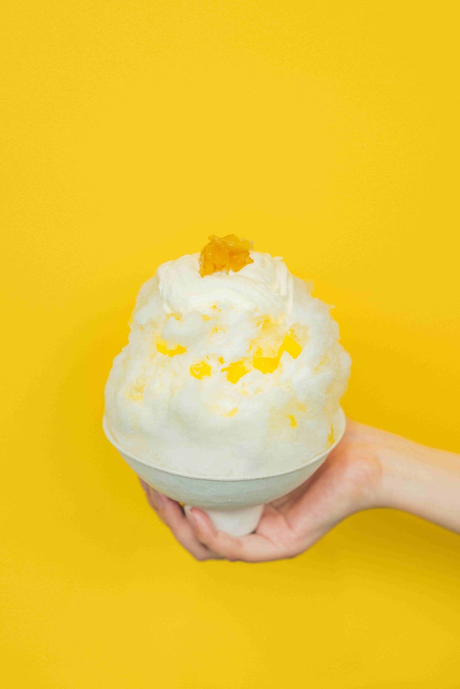 ふんわりとした氷の中には、なめらかなソフトクリームを忍ばせました。食べ進めるごとに、ヨーグルトのさっぱり感とミルクのコクが重なり合い、奥行きのある味わいをお楽しみいただけます。