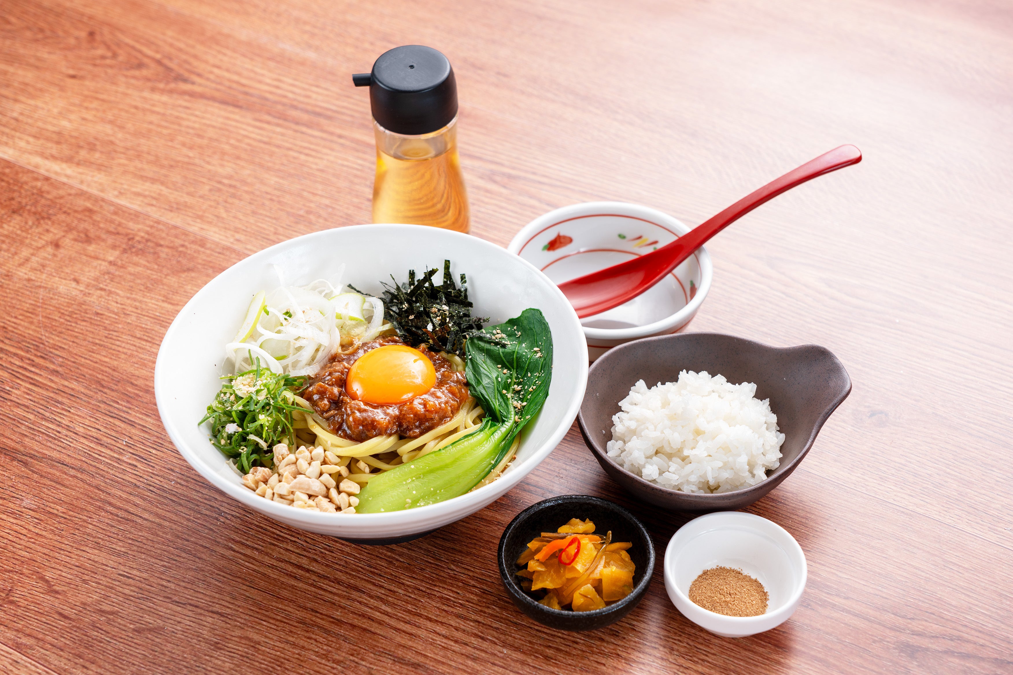 ◆汁なし麻辣担々麺 追いめし付き 990円(税込)