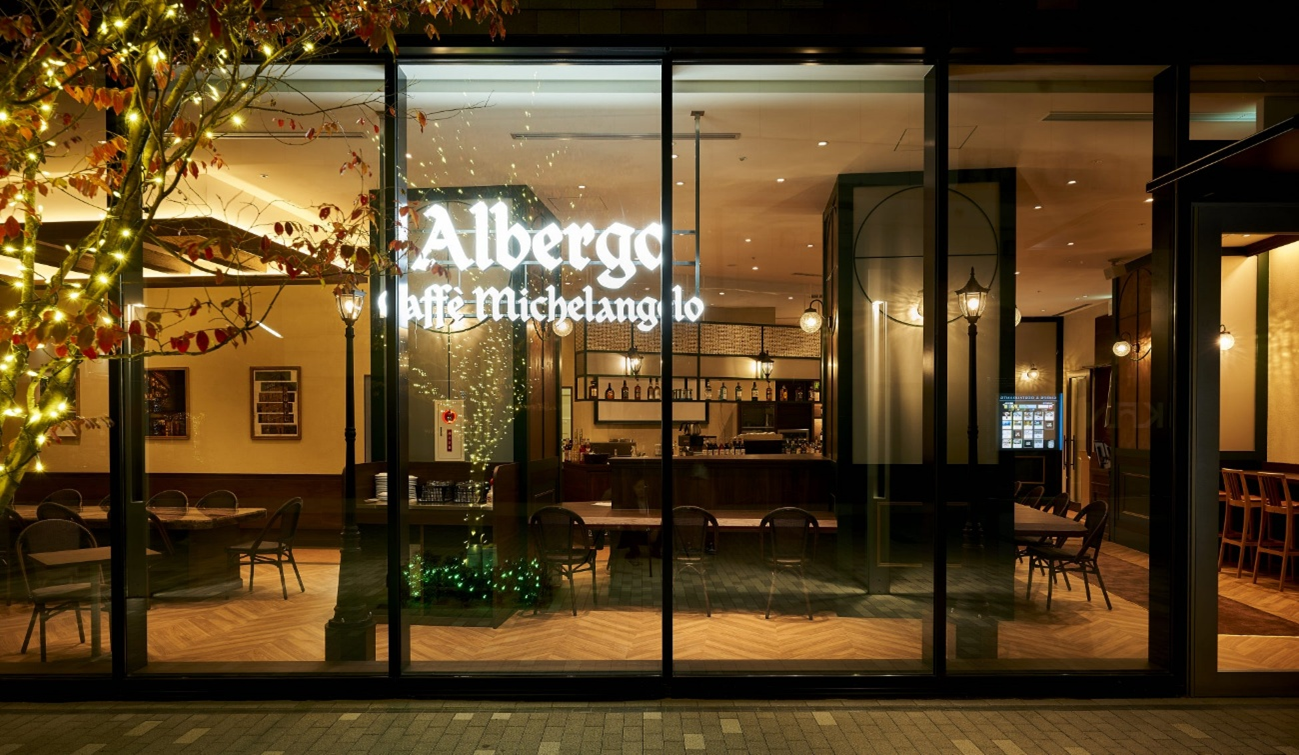 アルベルゴカフェ・ミケランジェロは、東京・代官山の「カフェ・ミケランジェロ」 の姉妹店で、2023年12月、今話題のセンタラグランドホテル大阪1Fにオープンしました。