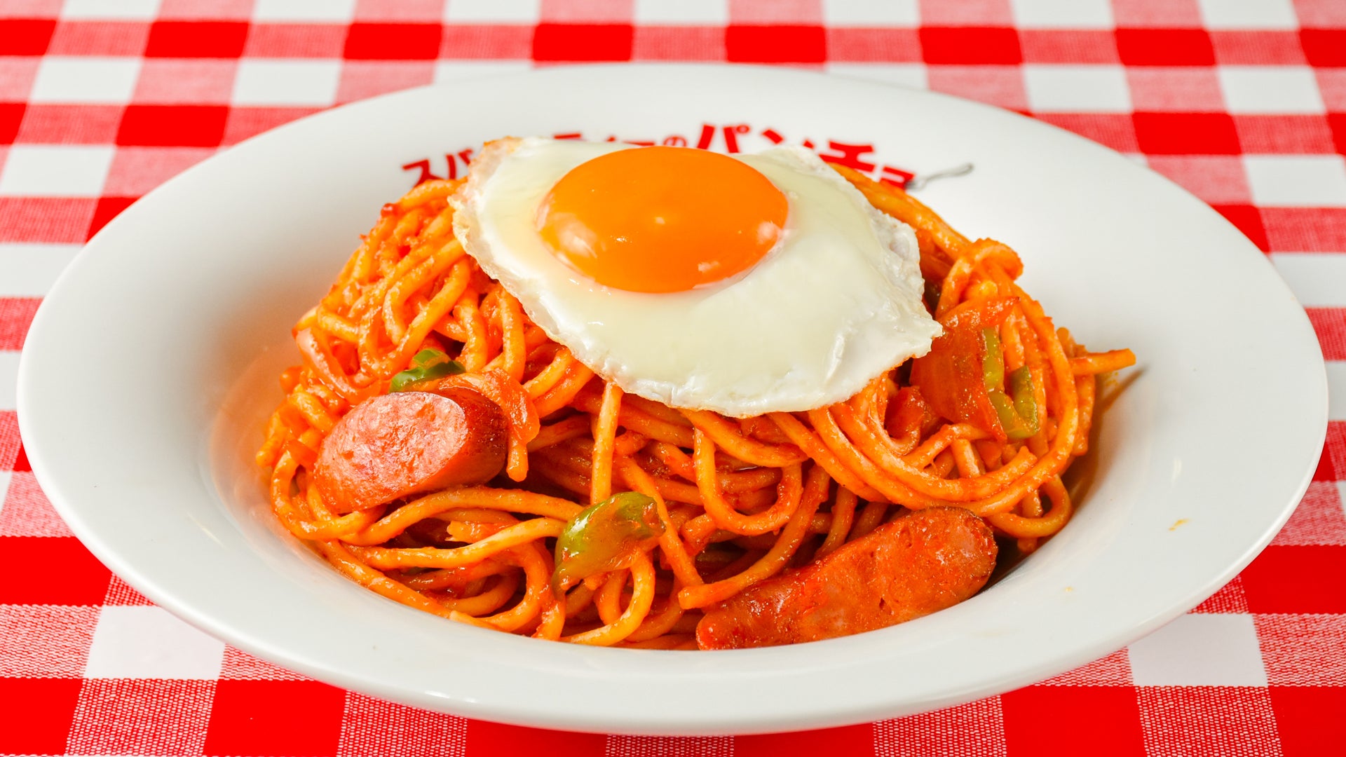 まずは一番人気の「ナポリタン」と定番トッピング「目玉焼き」を楽しんでみて! -