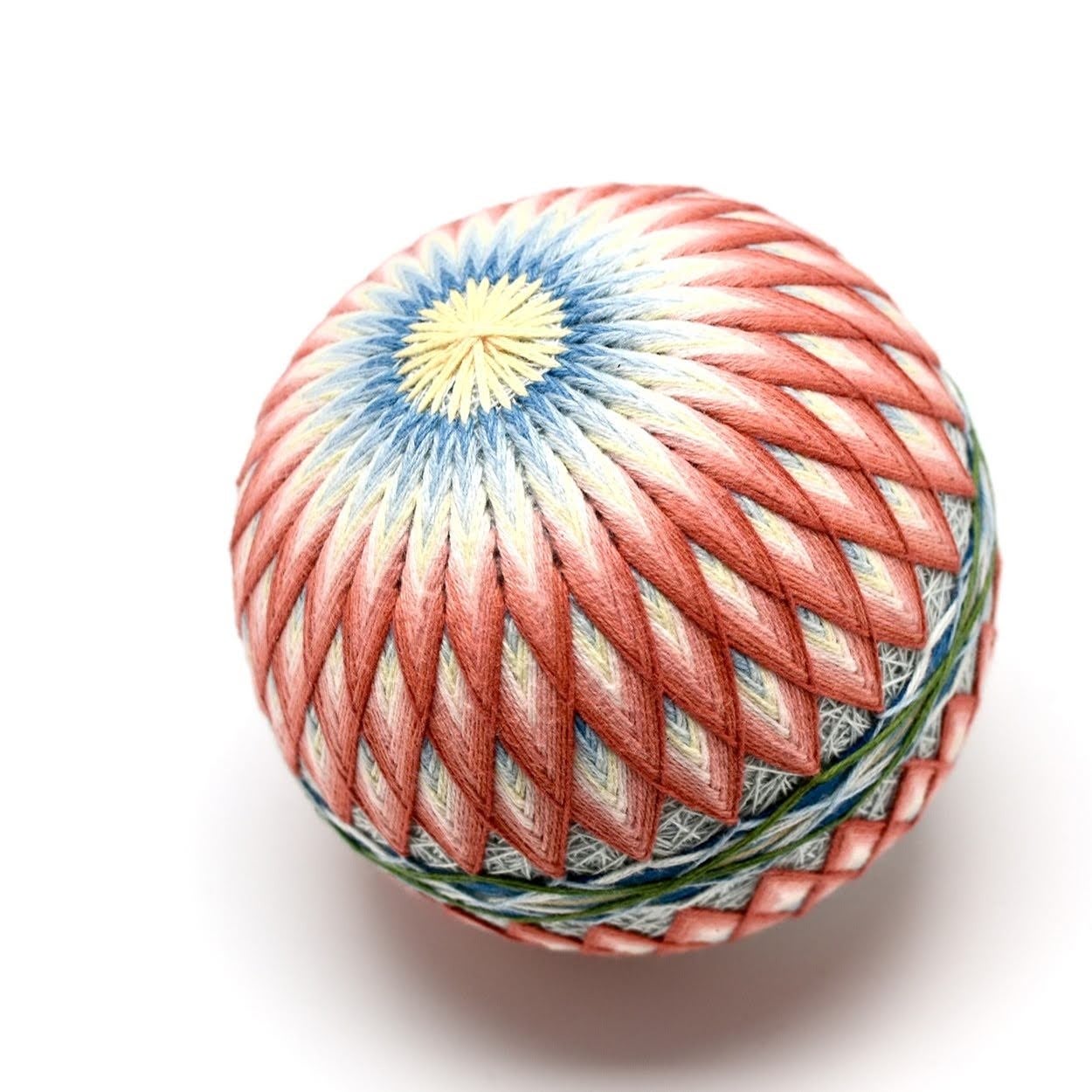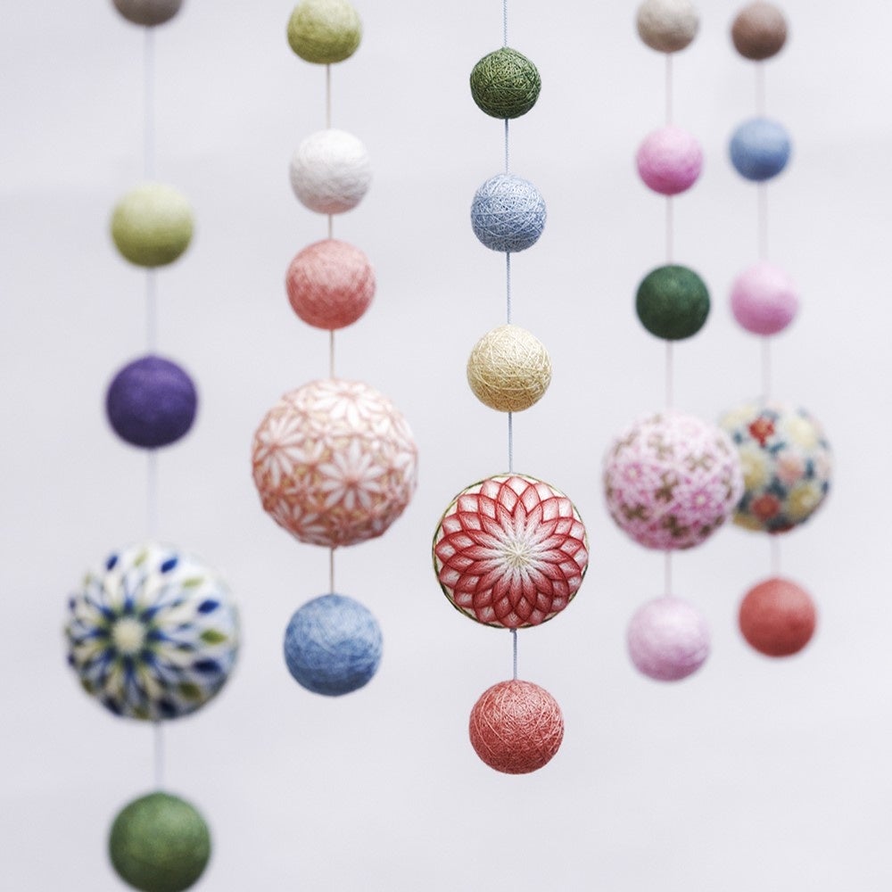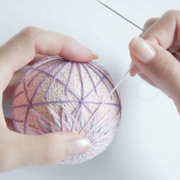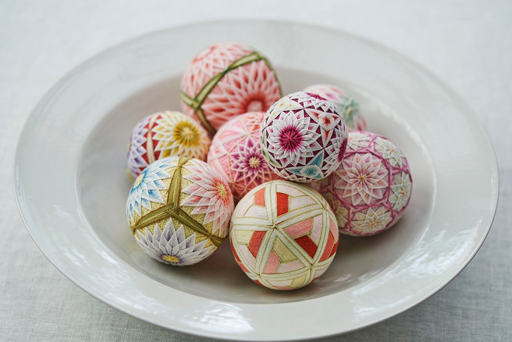 「讃岐かがり手まり」は、香川県に伝わる伝統工芸です。木綿糸を使い、一針ずつ繊細な幾何学模様をかがる手仕事として受け継がれてきました。