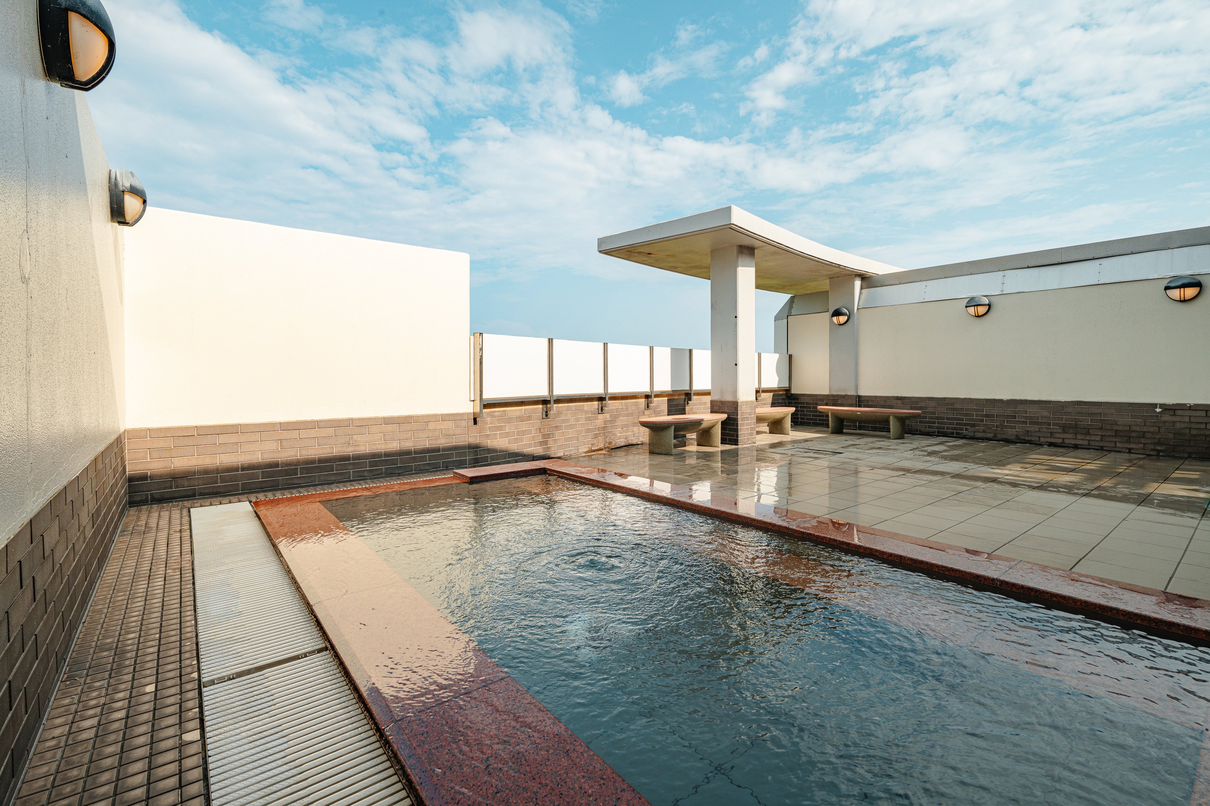 名立の湯「ゆらら」、屋内プール(夏季限定)、ホテル「光鱗」(客室25室)、宴会場