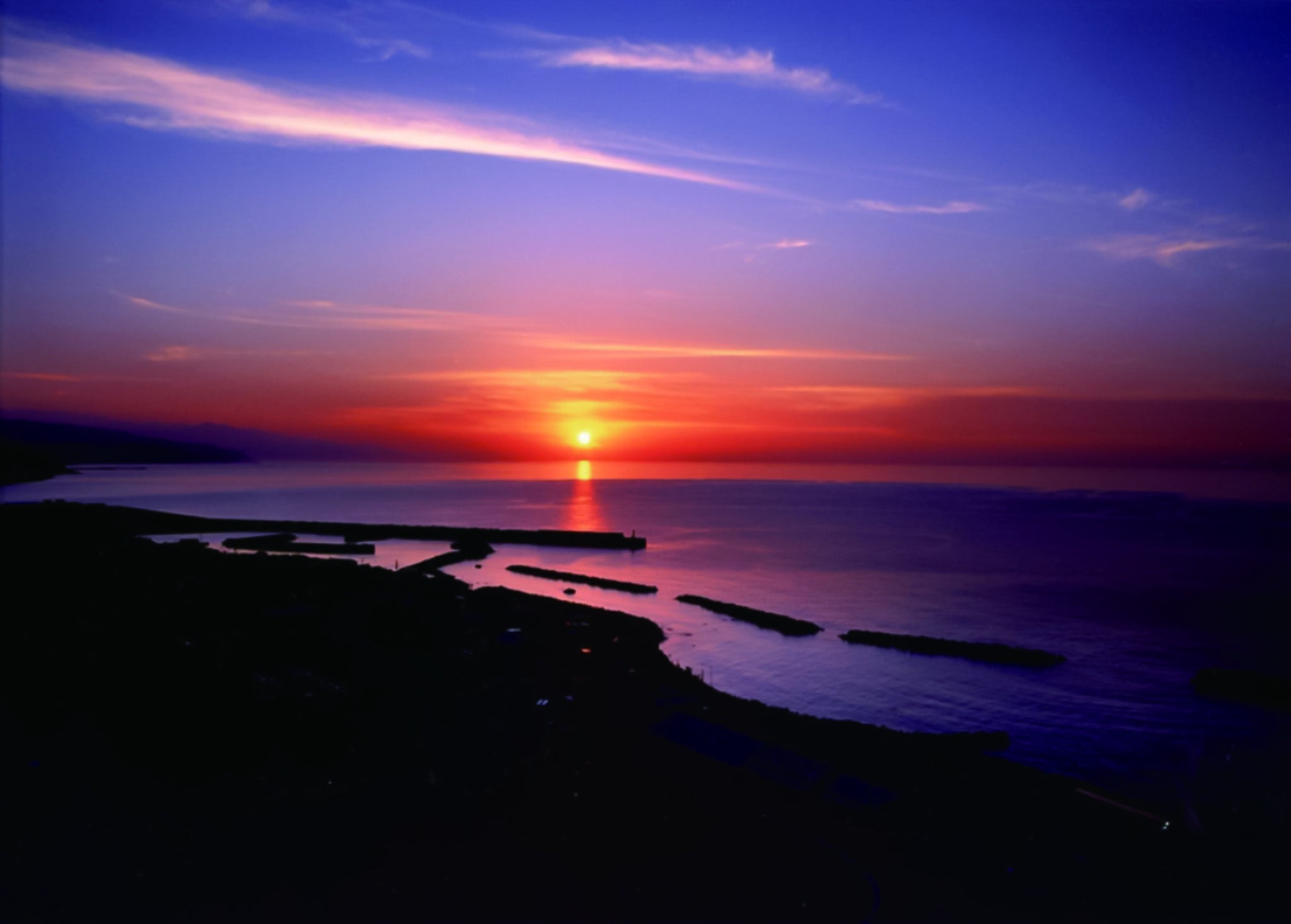日本海を一望できるロケーションからは、夕日が空と海を茜色に染める幻想的な景色が広がります。