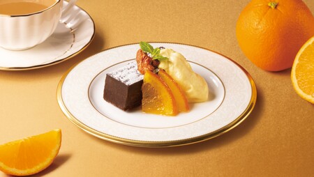 濃厚なガトーショコラとオレンジのさわやかな香りがお互いを引き立てあうデザートです。