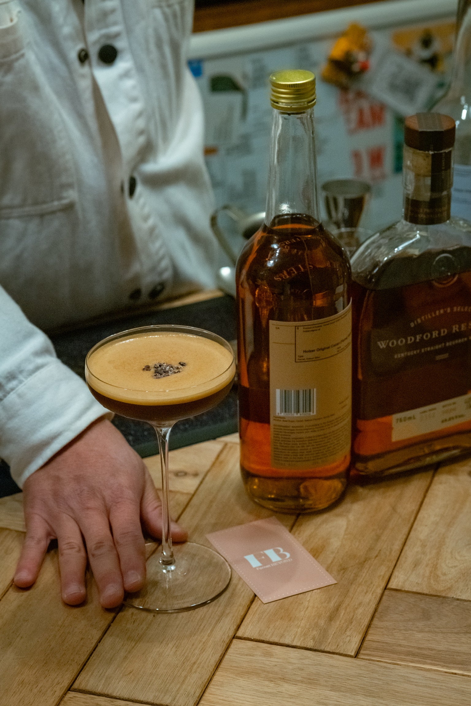 今回より主力商品の1つとしてご案内する『Holzer Original Cacao(旧 Fernet Hunter Cacao)』は、香港のクラフトチョコレートブランドConspiracy Chocolateから引き取るカカオの殻(ハスク)を再利用したアップサイクルプロダクトです。Holzer Originalの最大の特徴である液体の繊細さを残したまま、ほのかな焙煎香とリッチな質感を感じられる1本に仕上がっています。F|Bではエスプレッソマティーニやサイドカーのベースとして活躍しています。