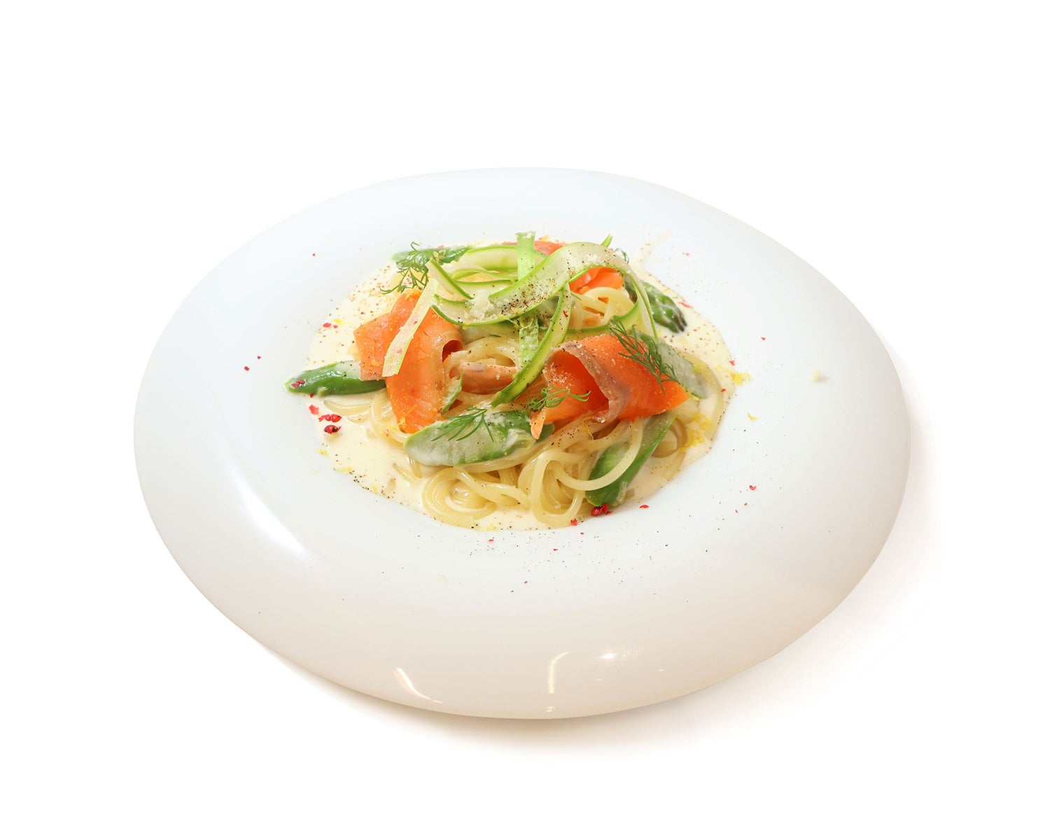爽やかなレモン香るスモークサーモンとアスパラのクリームパスタ
