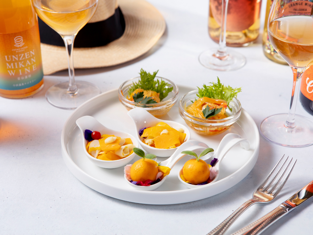 本プランでは、“世界を旅する、夏のご褒美タイム”をテーマに、スペインやチリ、日本からソムリエがセレクトしたオレンジ色のワインをフリーフローでご用意いたします。